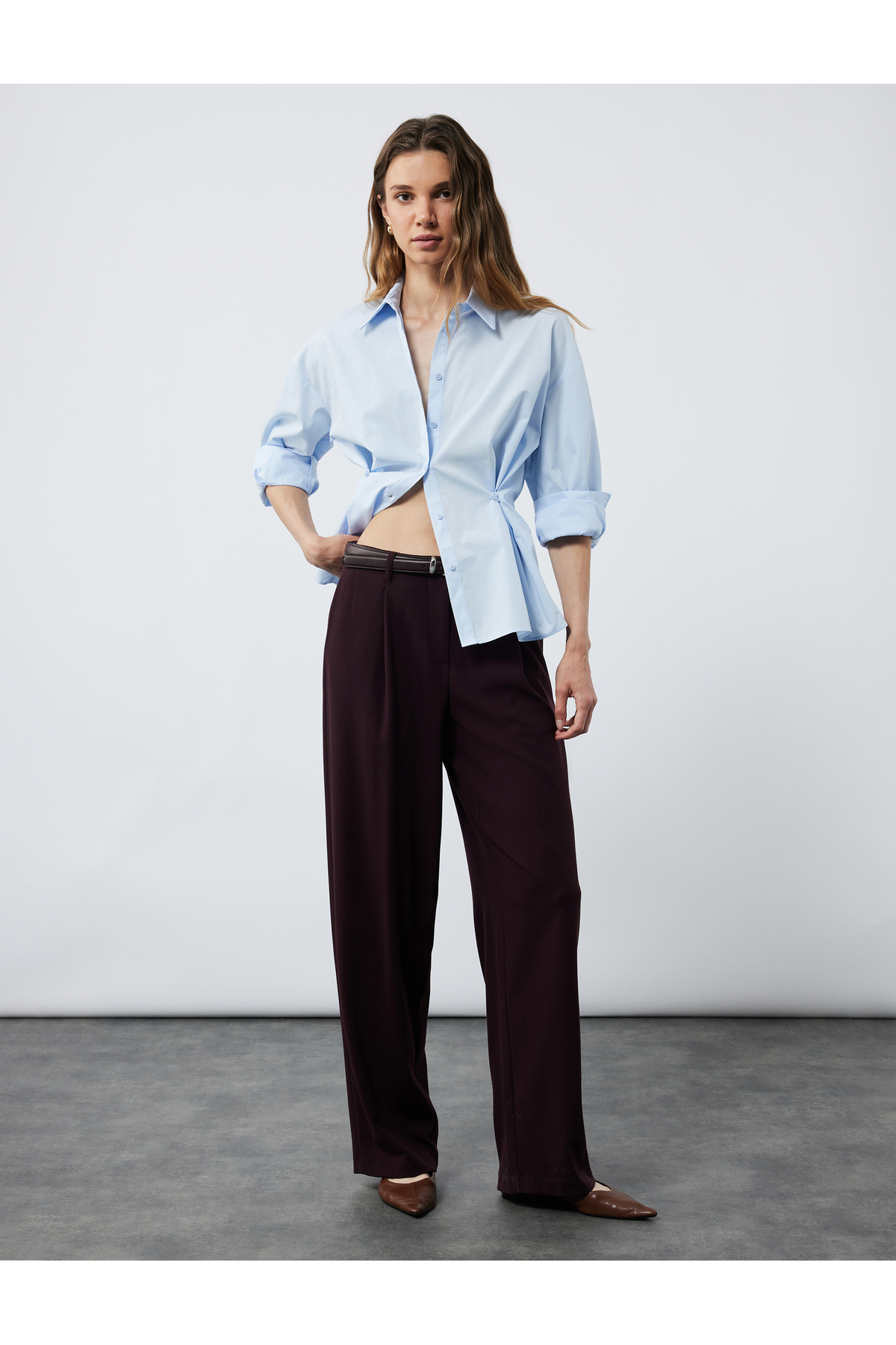 پیراهن پوپلین سایز بزرگ آستین بلند نخی با جزئیات پلیسه و دکمه بسته شدن