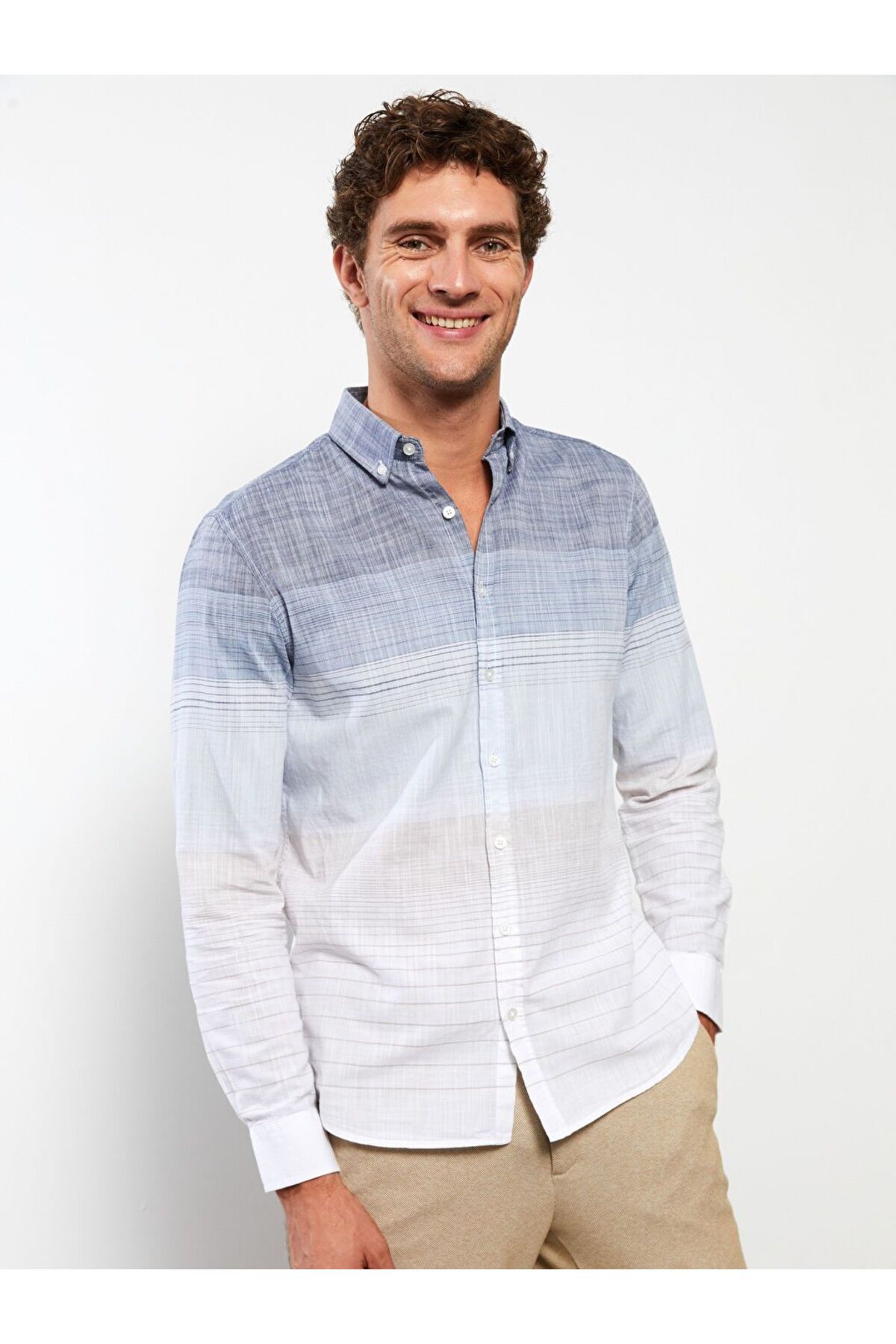 پیراهن مردانه پوپلین راه راه آستین بلند معمولی