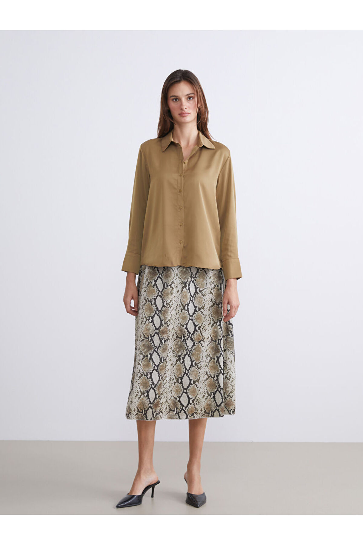 پیراهن زنانه ساتن خاکی سایز بزرگ