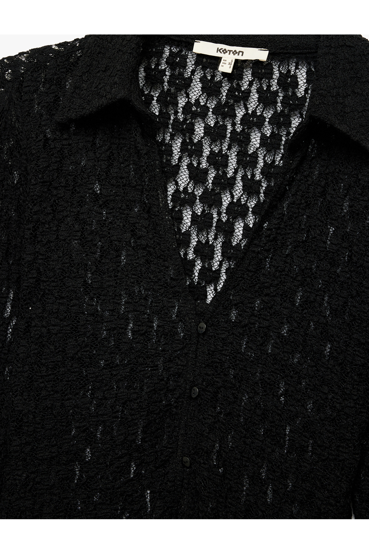 پیراهن توری یقه باز آستین بلند نیمه شفاف اسلیم فیت