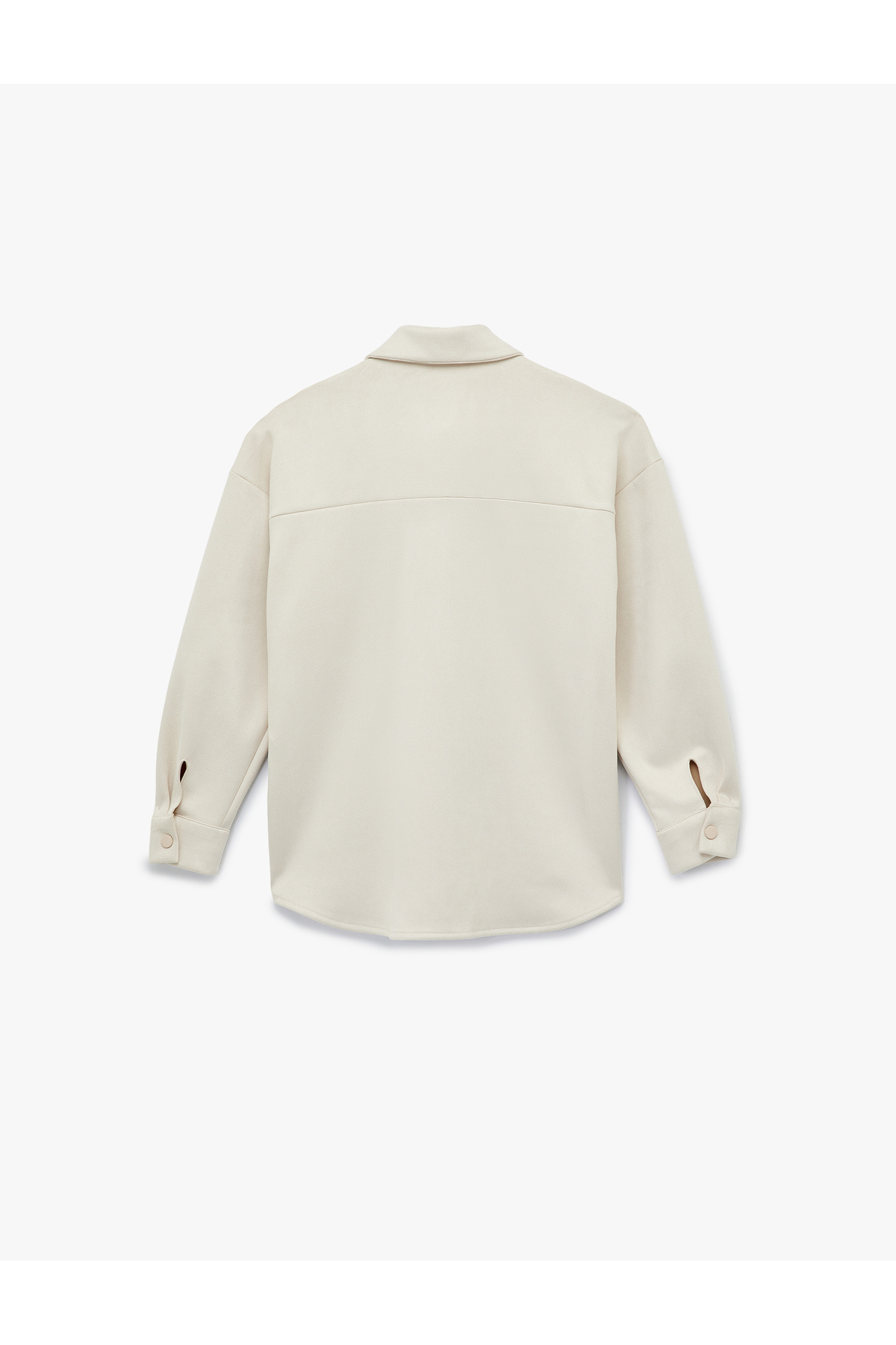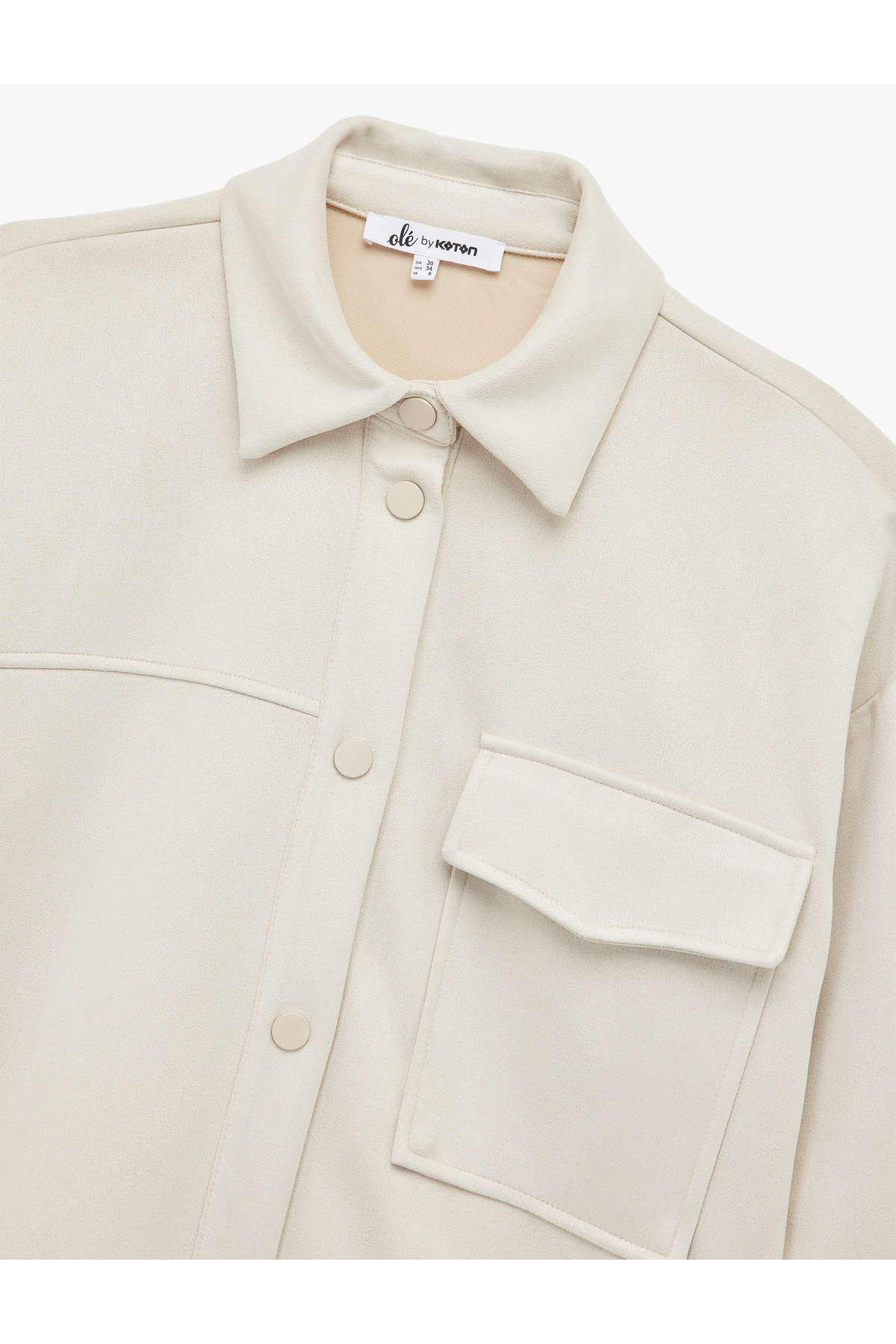ژاکت پیراهن جیر دکمهدار بزرگ با یقه کلاسیک و جیب