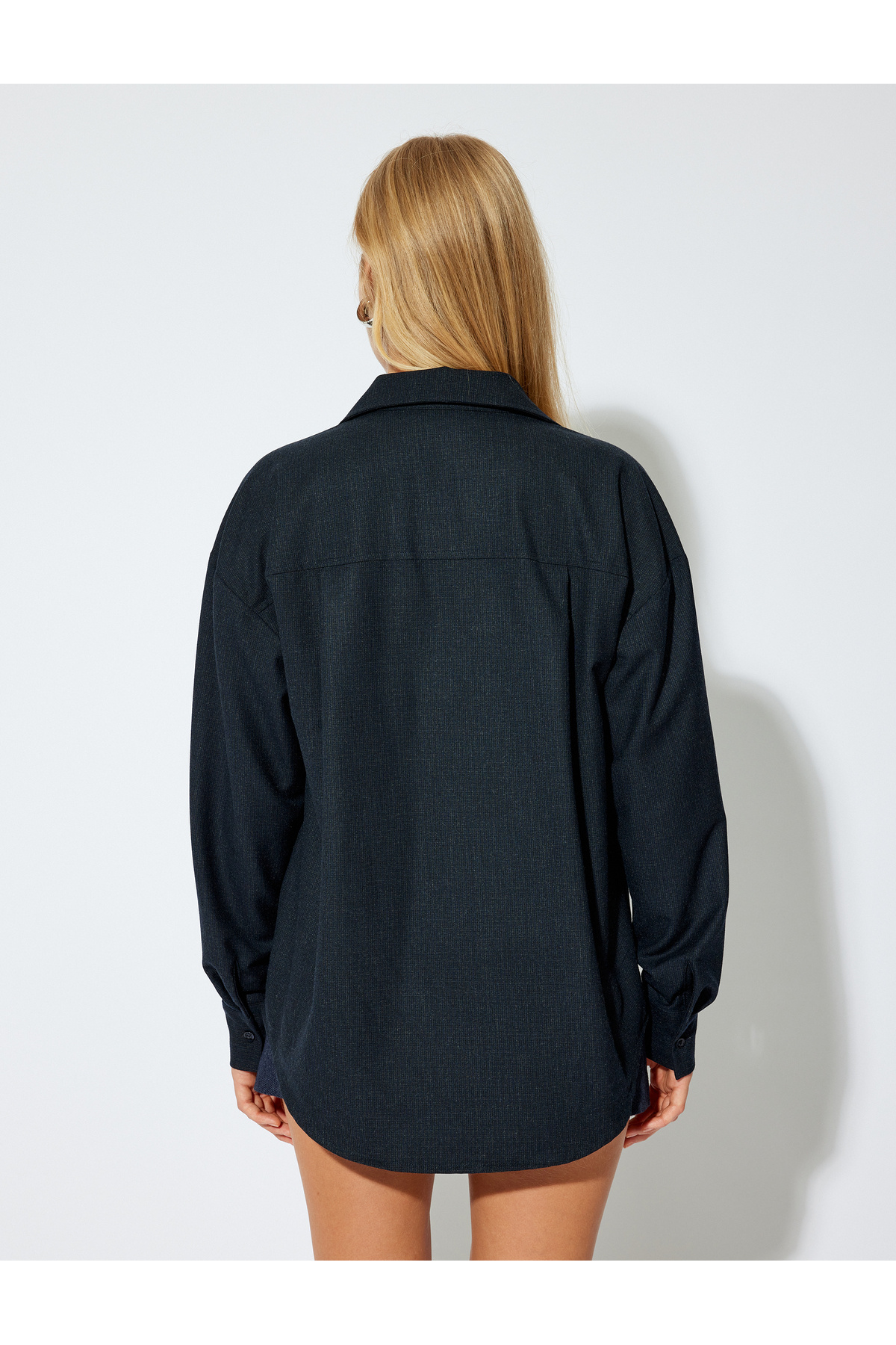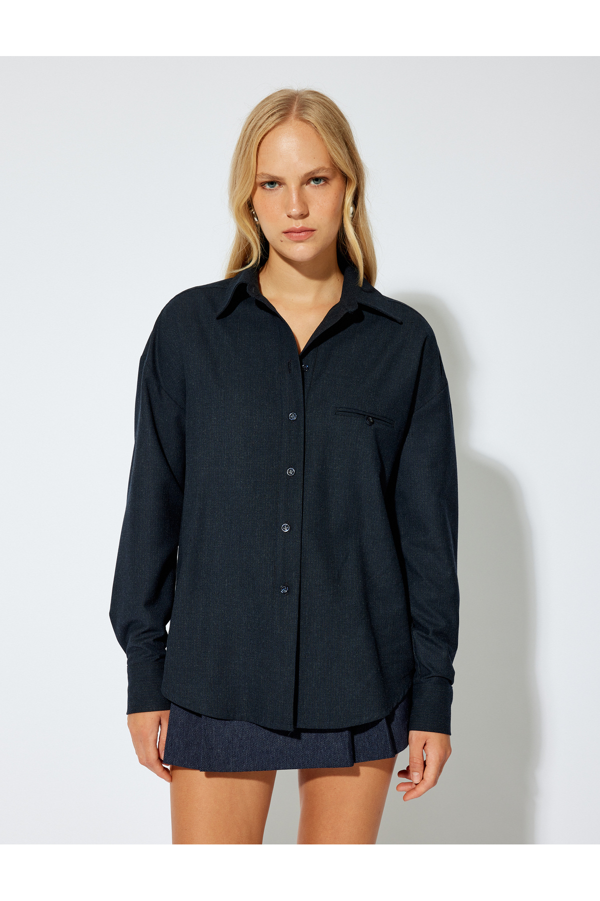 پیراهن آستین بلند با جزئیات تک جیب، برش معمولی.