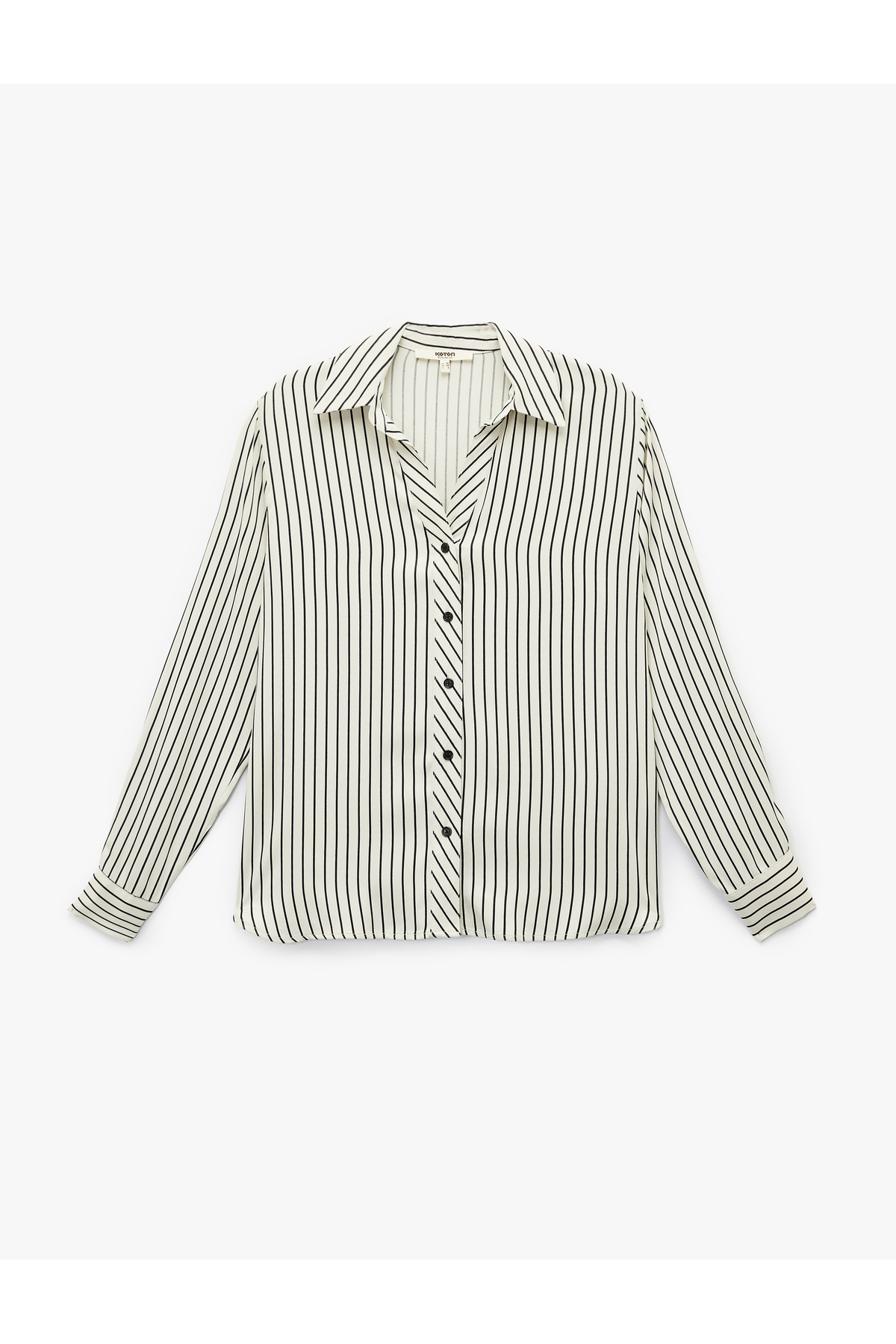 پیراهن ویسکوز دکمه‌دار آستین بلند معمولی
