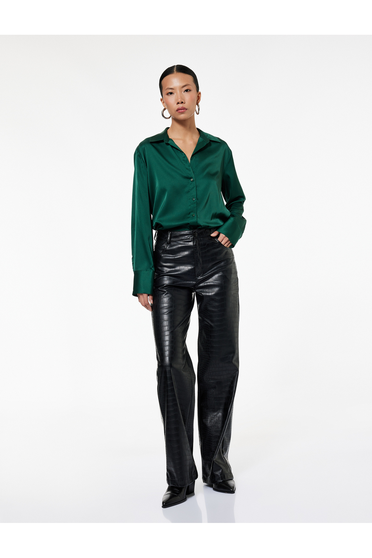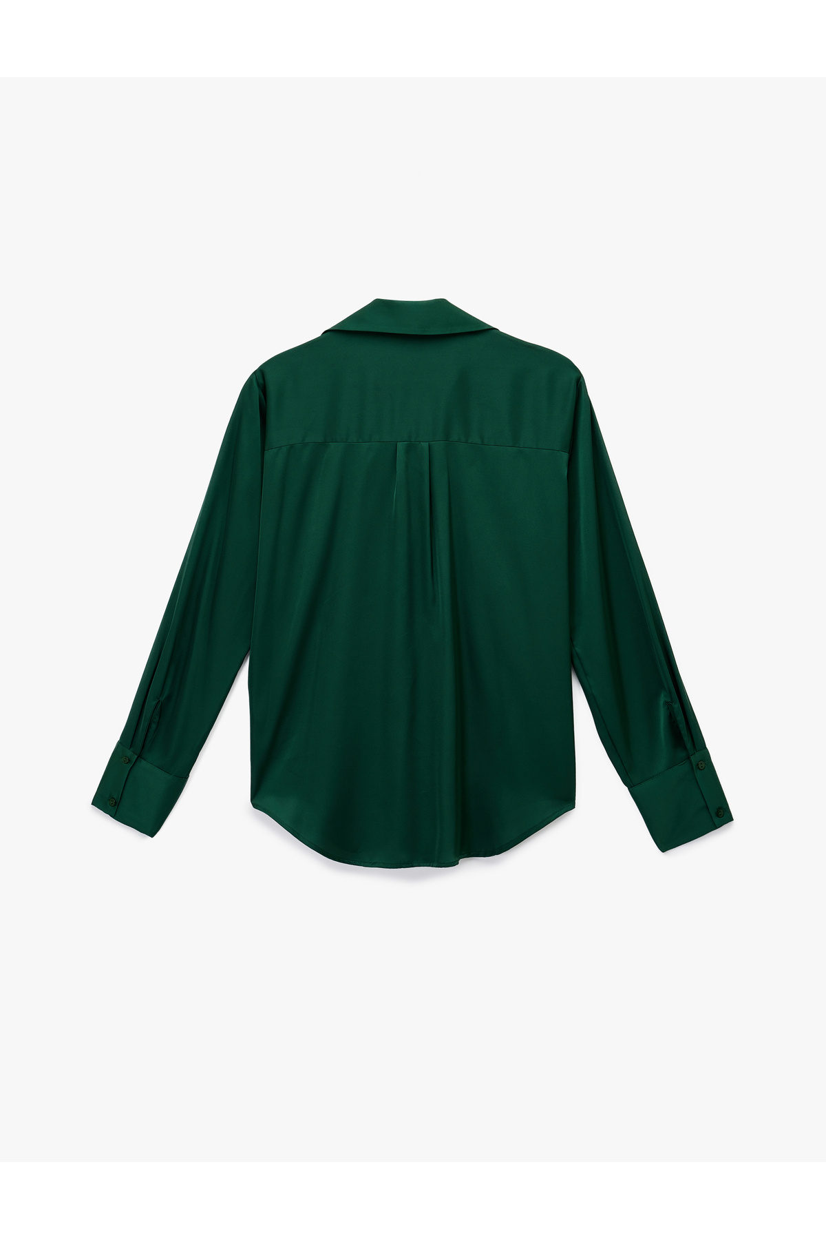 پیراهن ساتن دکمهدار آستین بلند معمولی