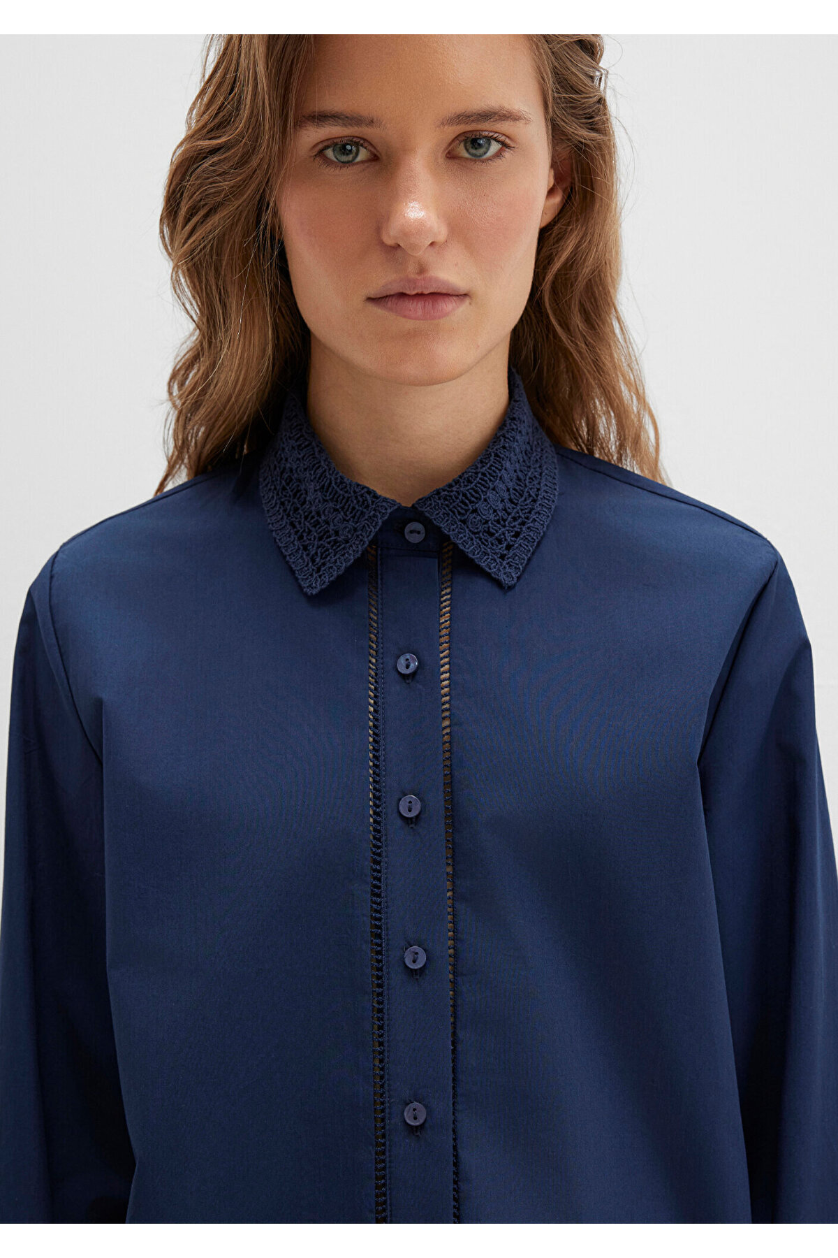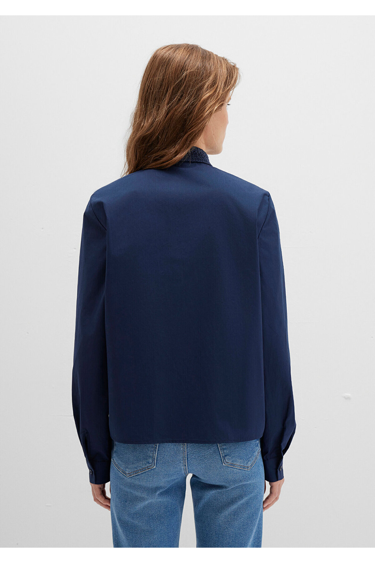 پیراهن سرمهای با جزئیات نوار دوزی شده، فیت معمولی / برش معمولی ۱۲۱۱۷۴-۸۲۳۱۸