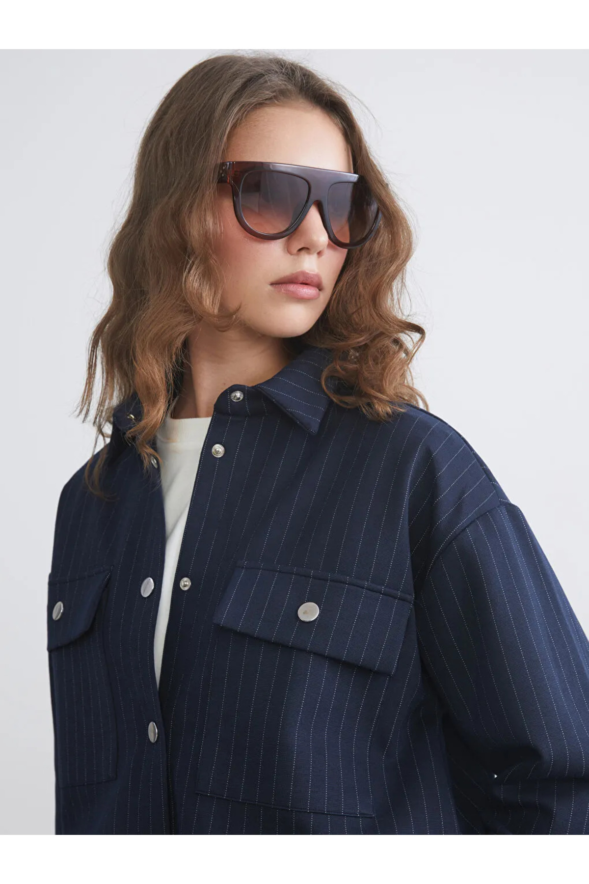 تونیک پیراهن زنانه سایز بزرگ راه راه سرمهای ساده LCW