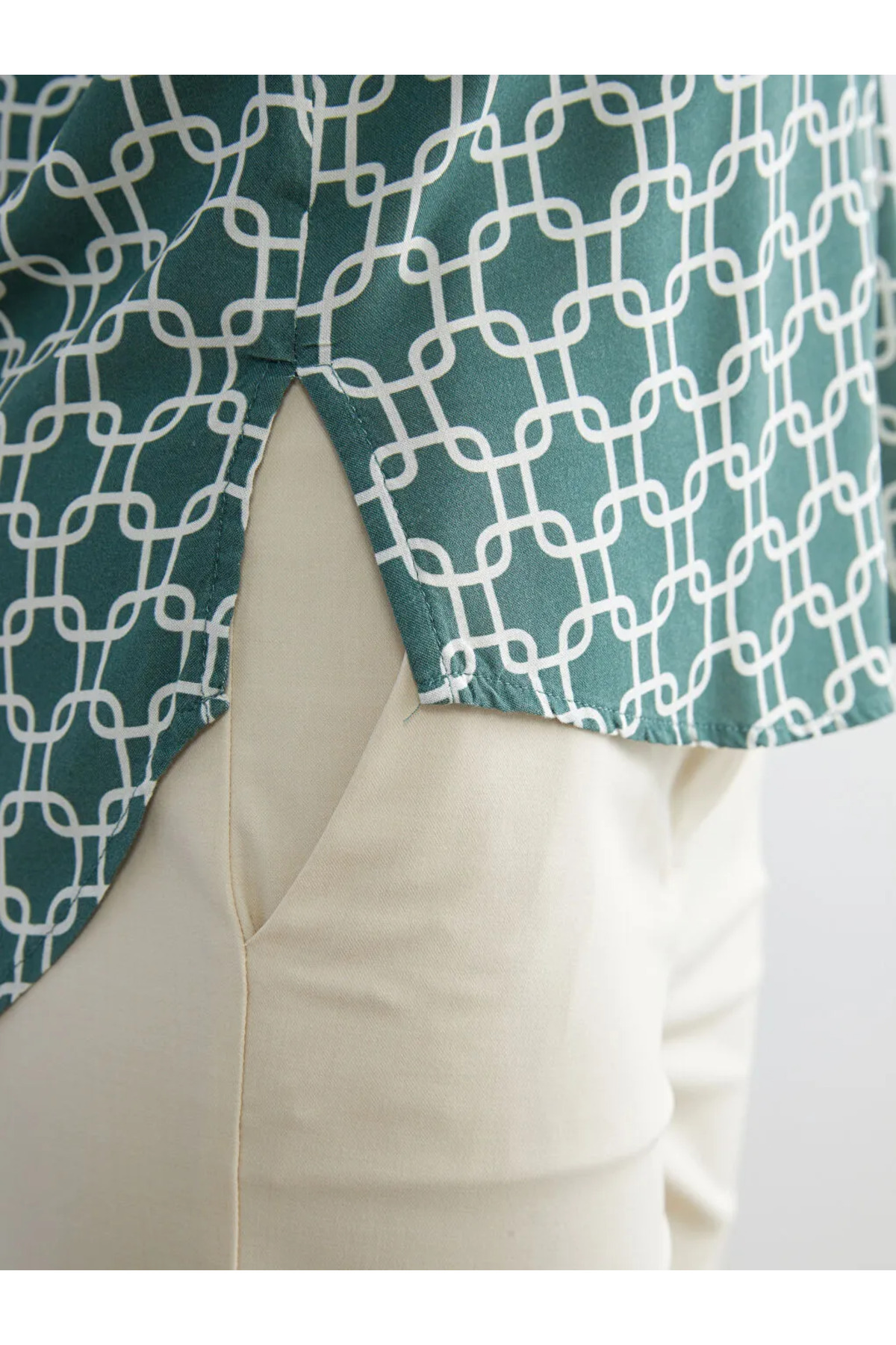 پیراهن زنانه طرح‌دار سبز کلاسیک LCWAIKIKI