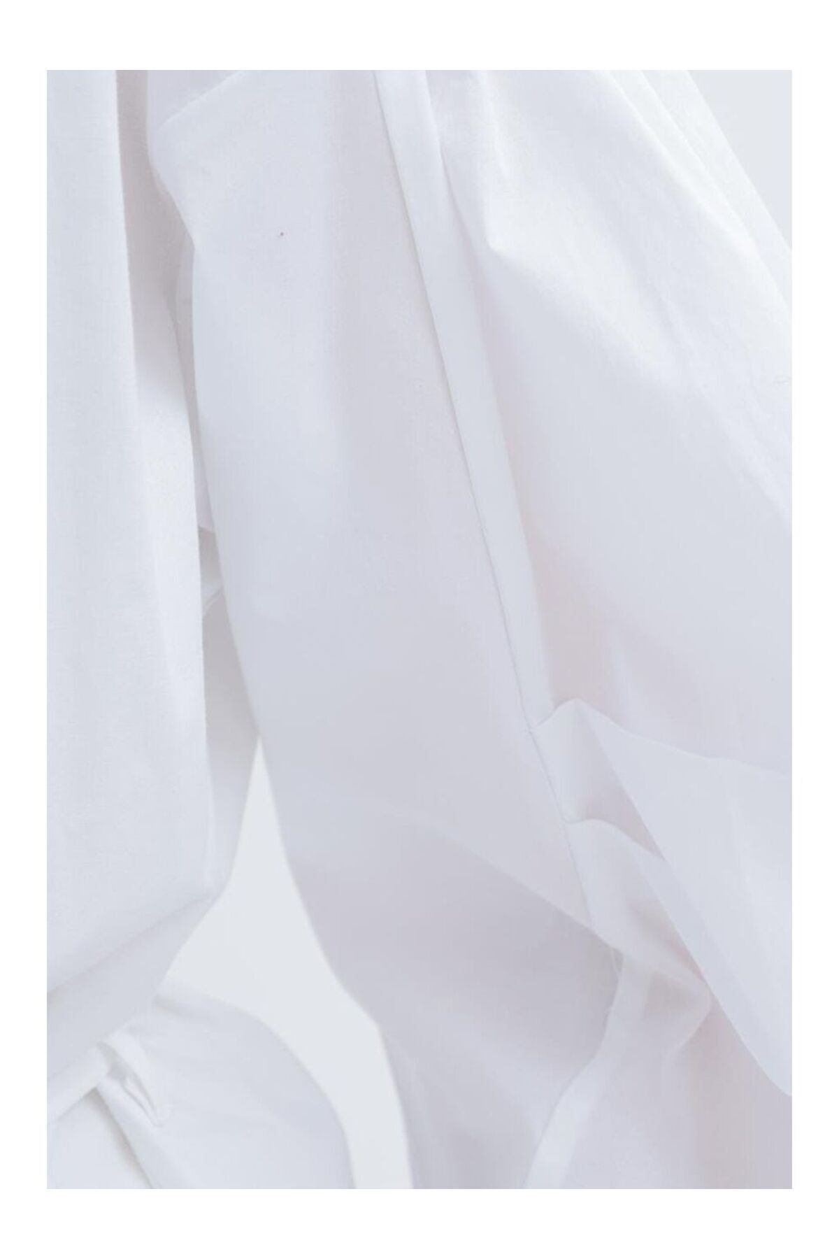 پیراهن پوپلین پلیسه دار سفید با کمربند نازک