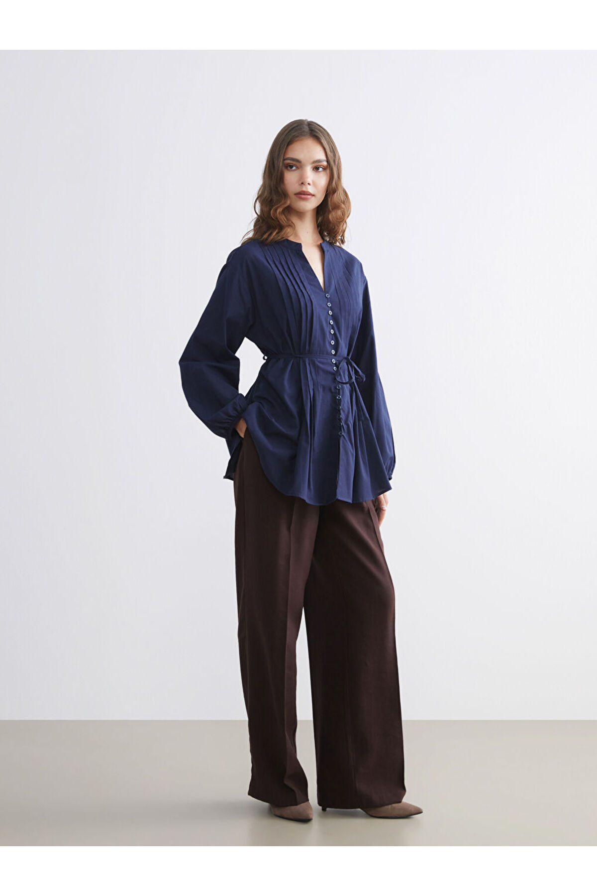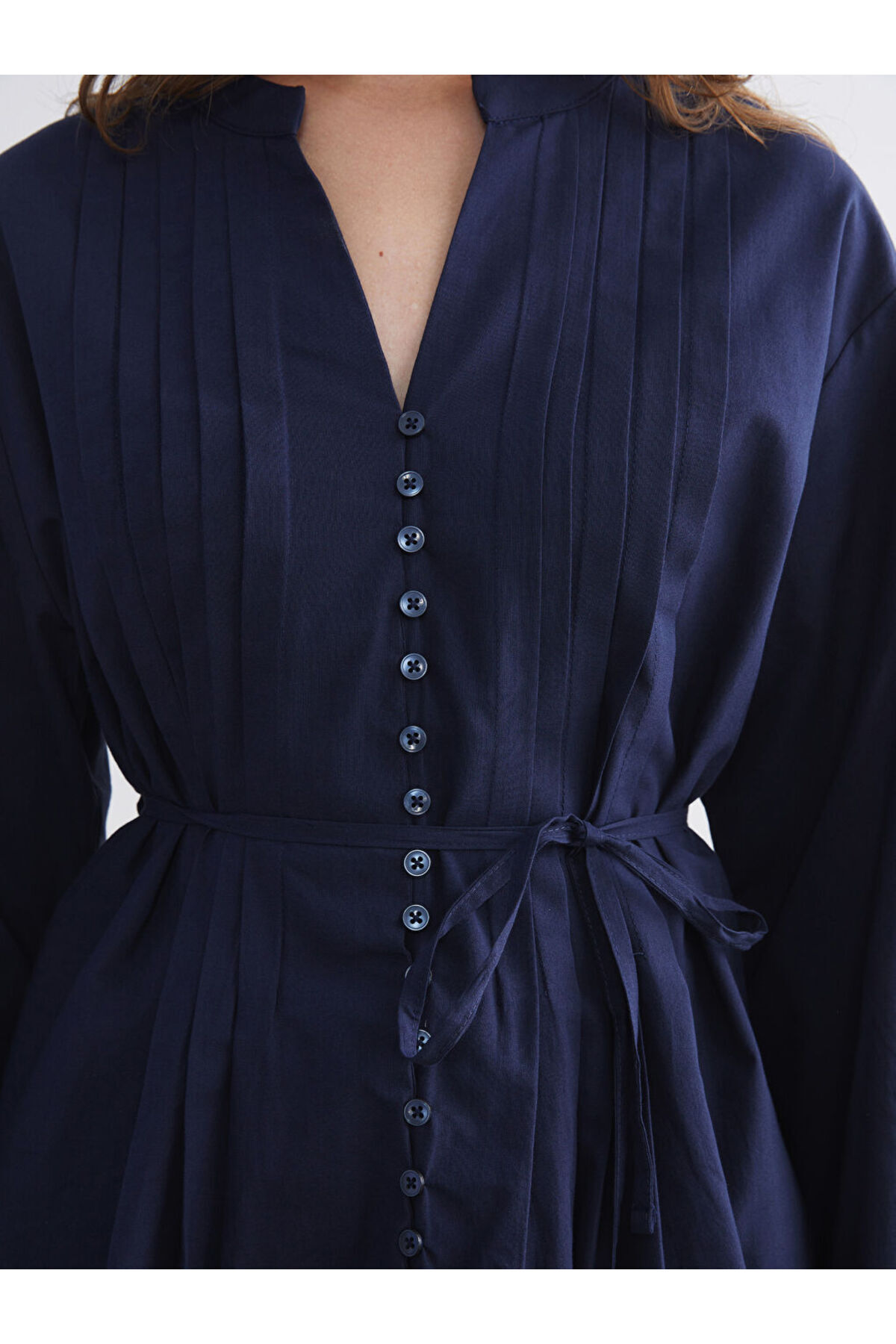 تونیک پیراهن زنانه یقه باز سرمهای کمربنددار