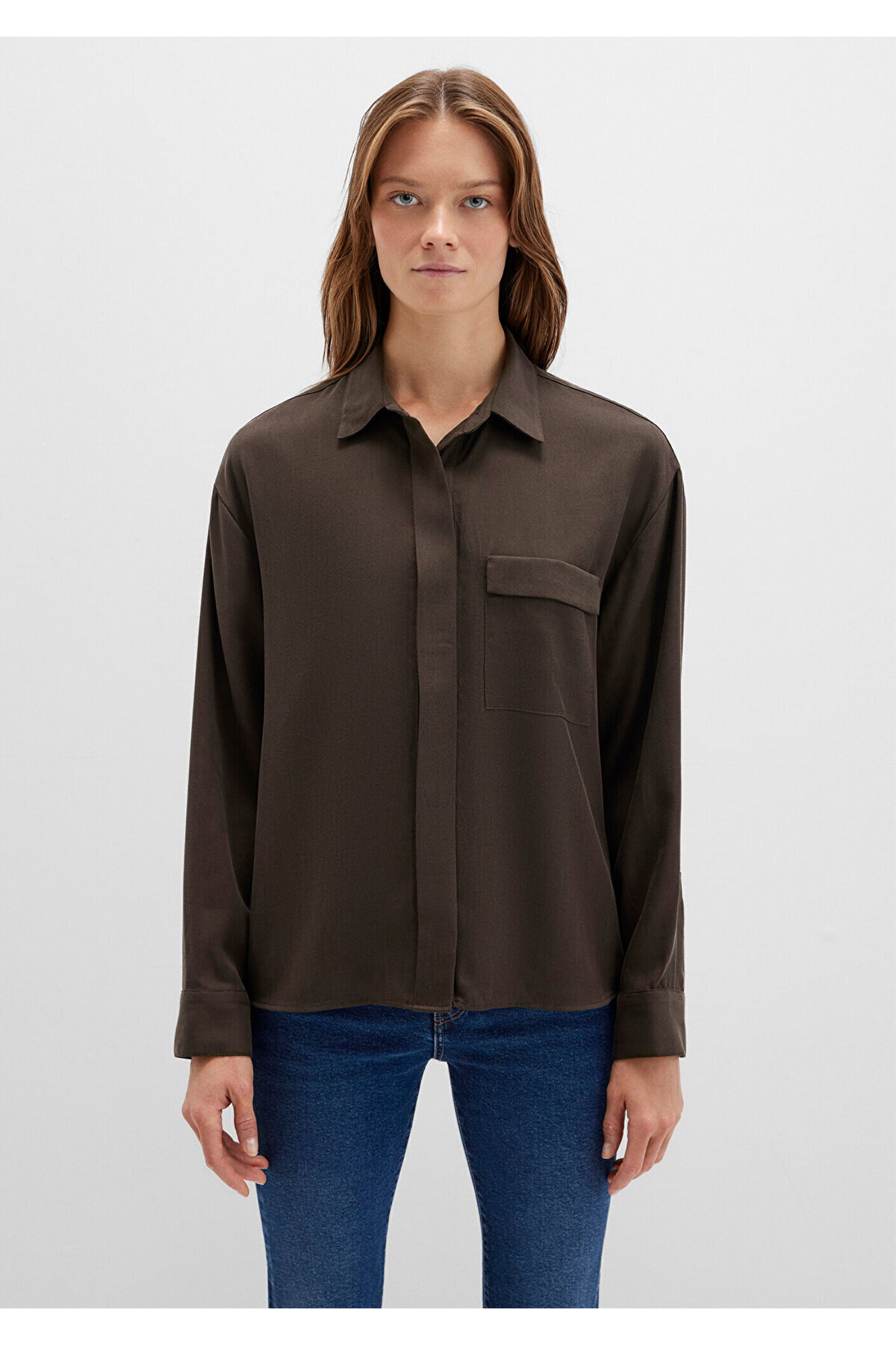 پیراهن لیوسل قهوهای (TENCEL™) سایز بزرگ / فیت گشاد 1211354-71540