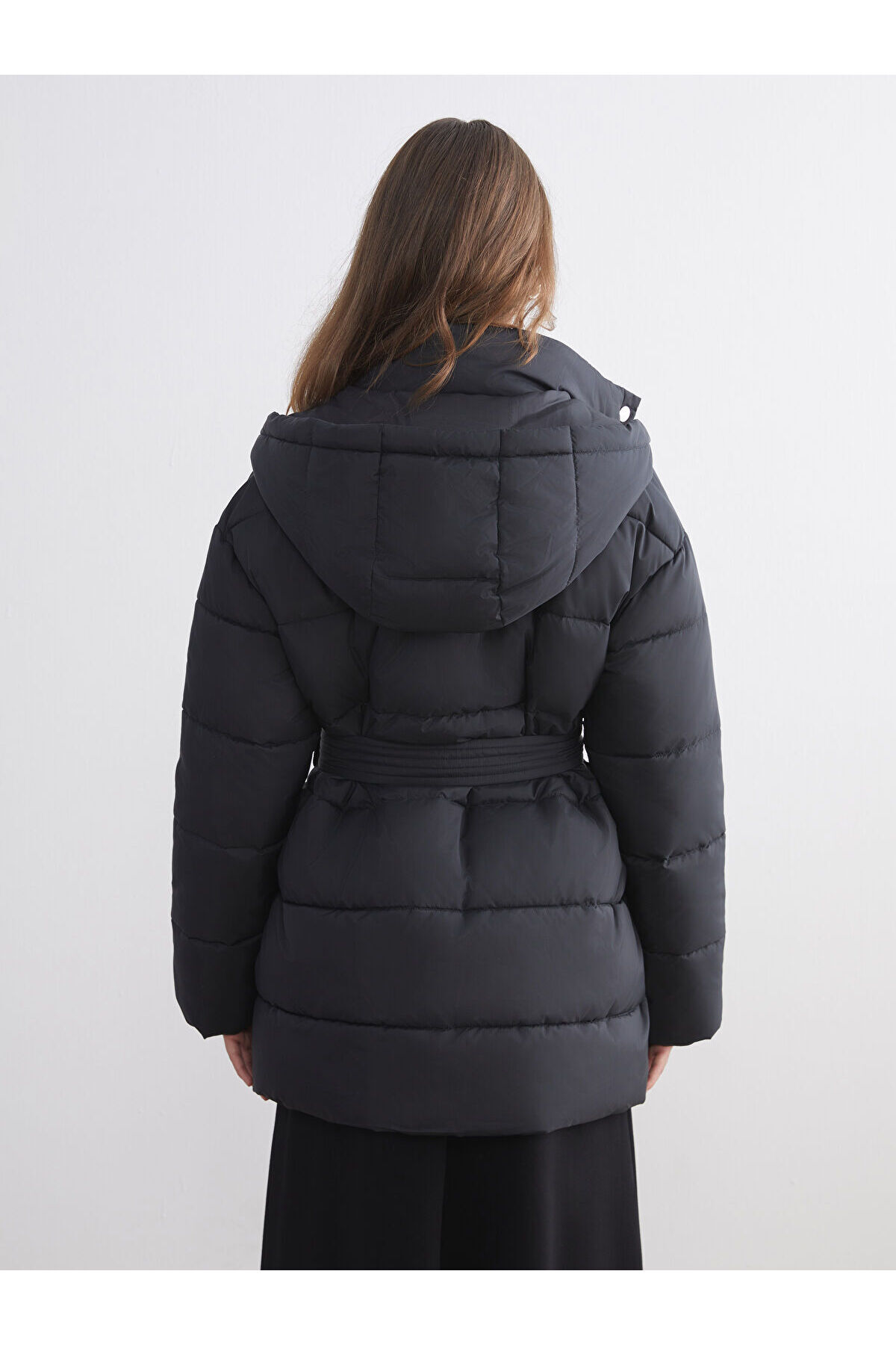 کاپشن پفی زنانه کلاهدار مخصوص فصل جدید Özmarka با کمربند