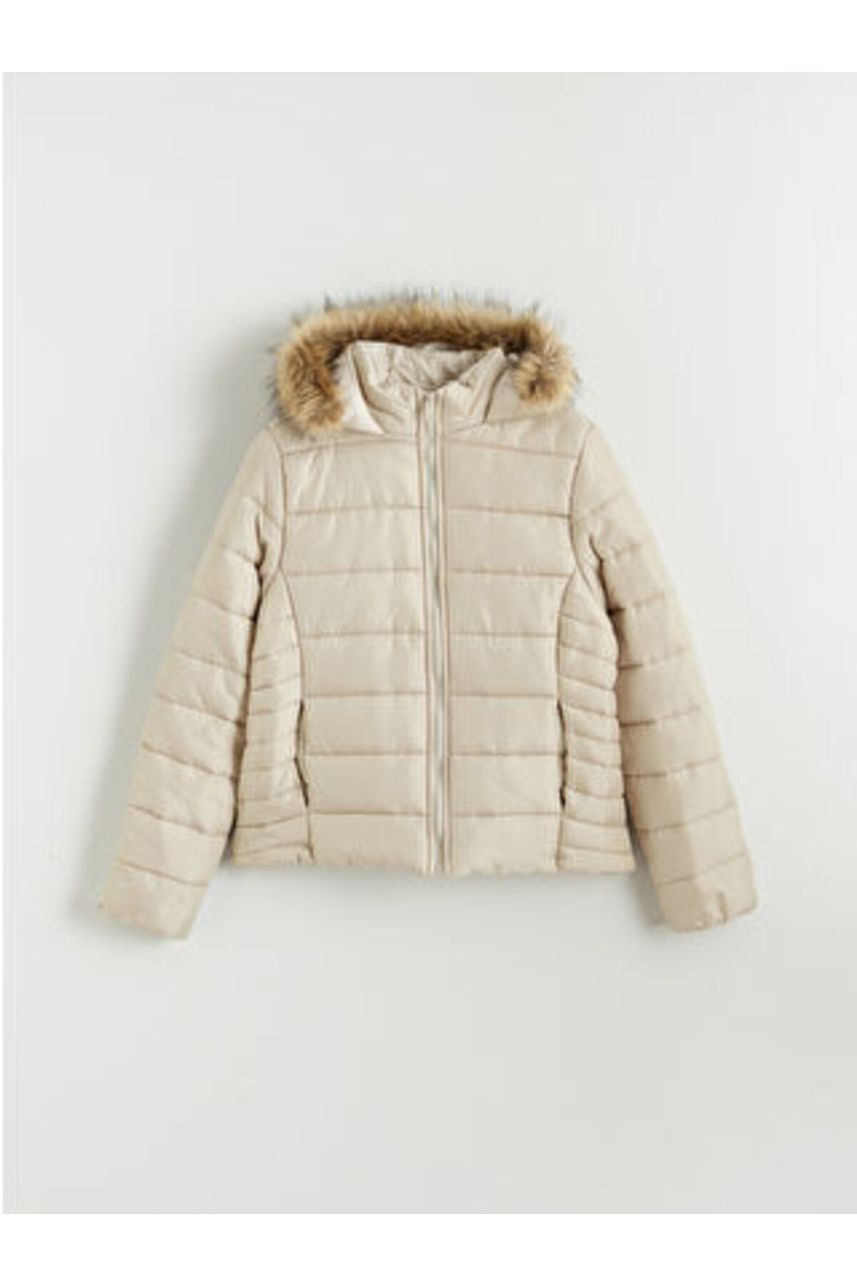 کاپشن پفی کلاه‌دار خزدار زنانه LCW ECO