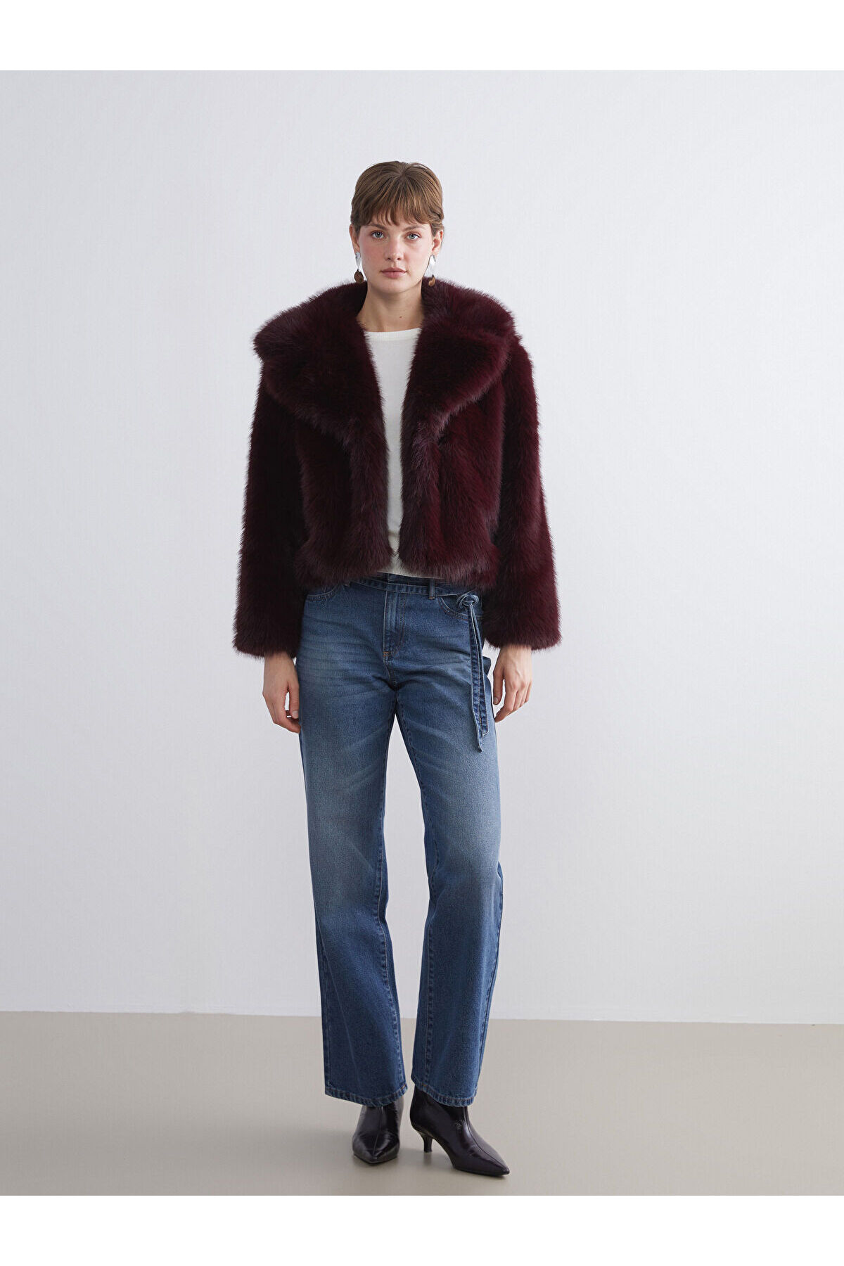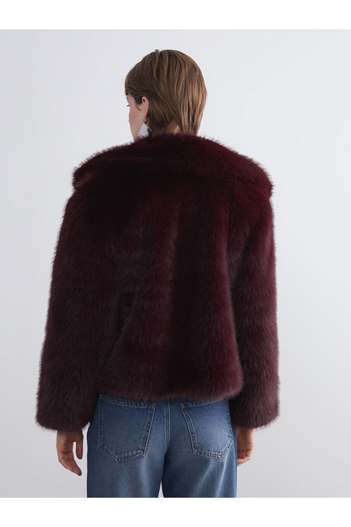 پالتو خز زنانه یقهدار کلاسیک آلو رنگ LCWAIKIKI