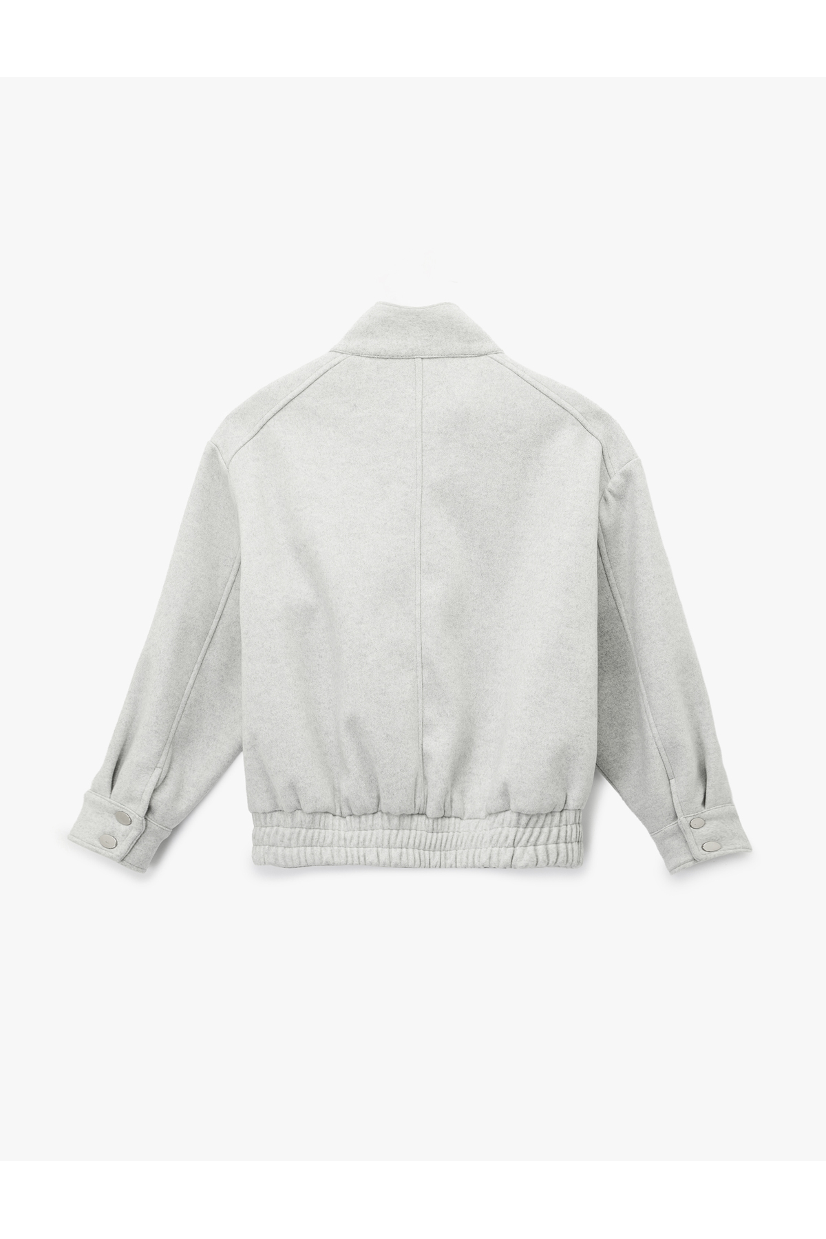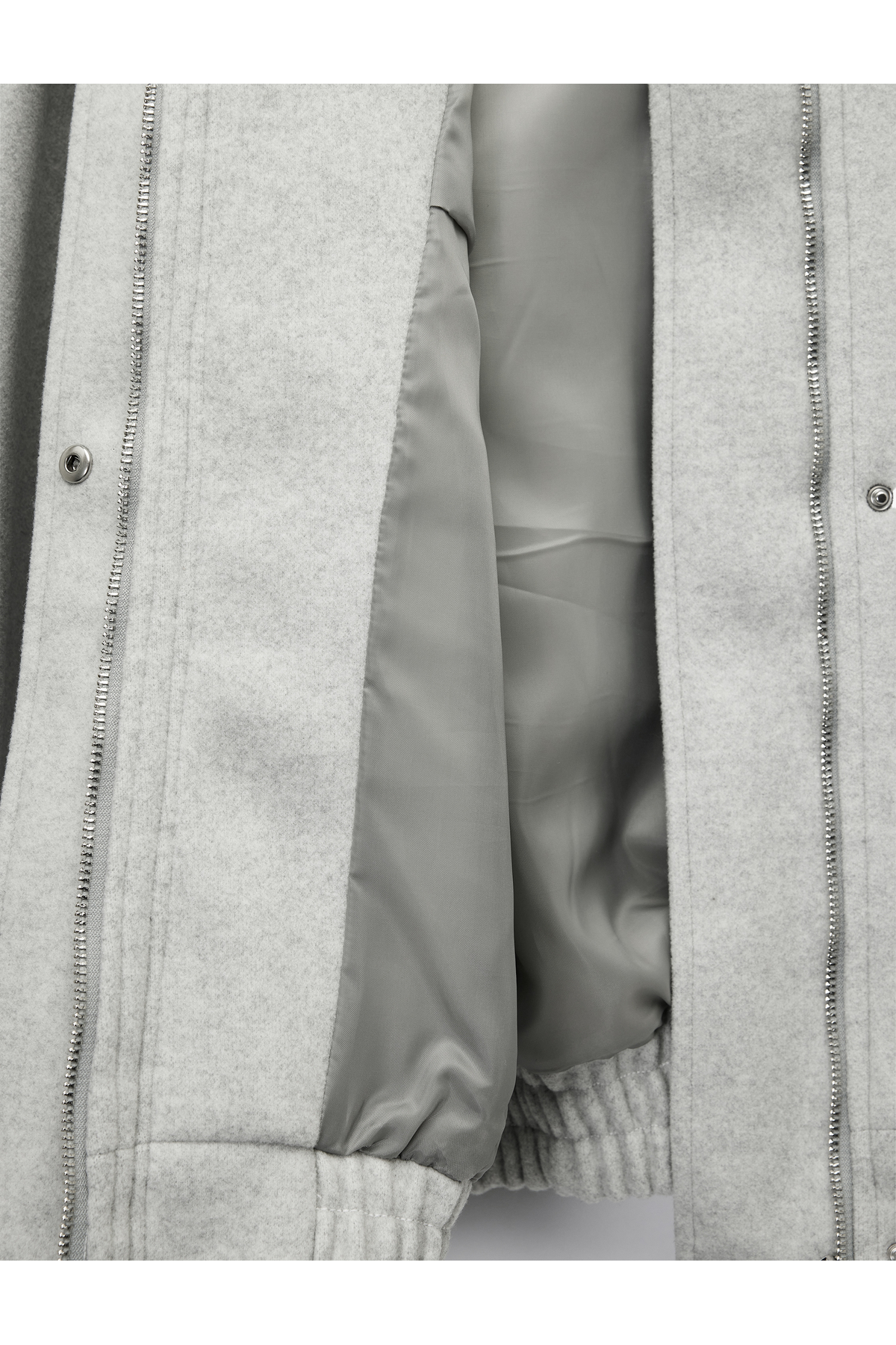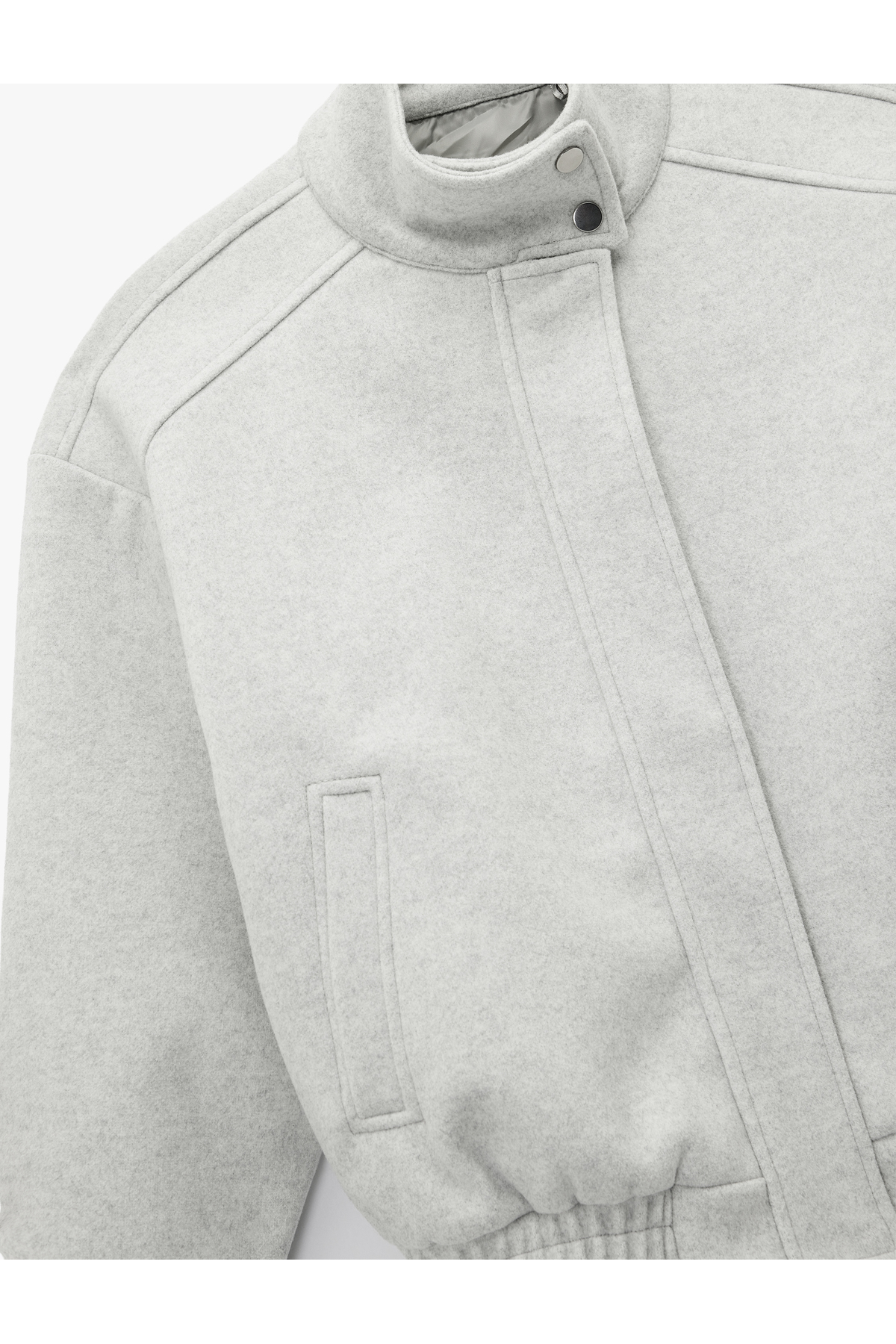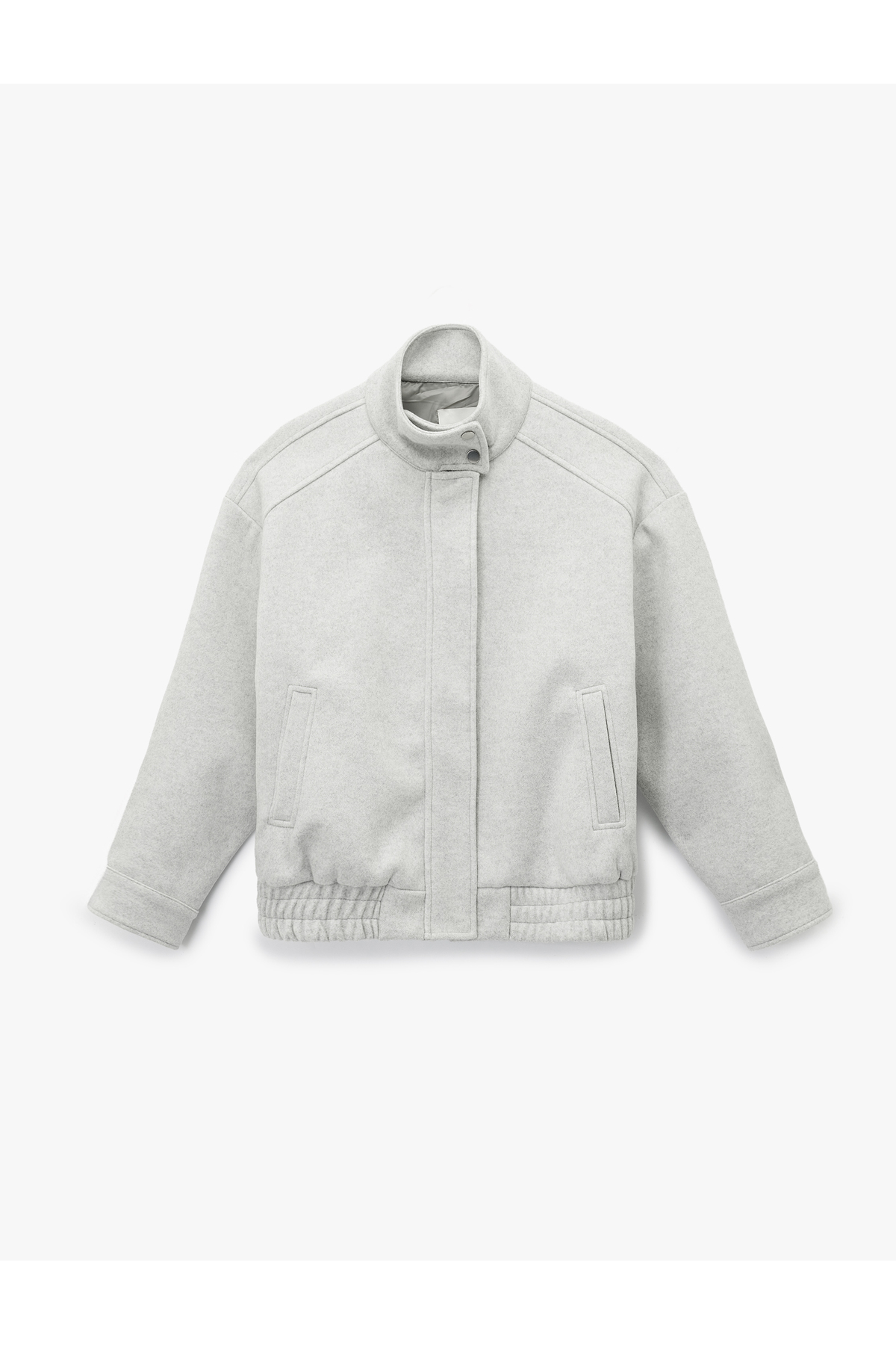 کاپشن کشمیری آستین بلند، جیبدار، زیپدار و یقه ایستاده.