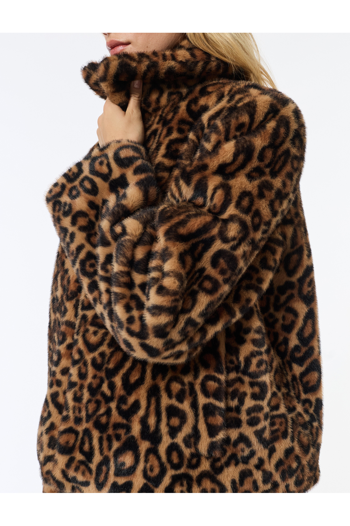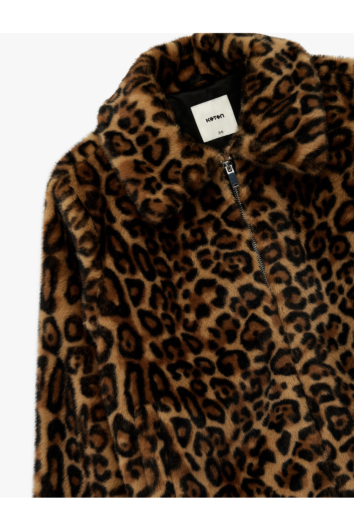 پالتو خز مصنوعی، طرح پلنگی، تاپ کوتاه با جیب و زیپ