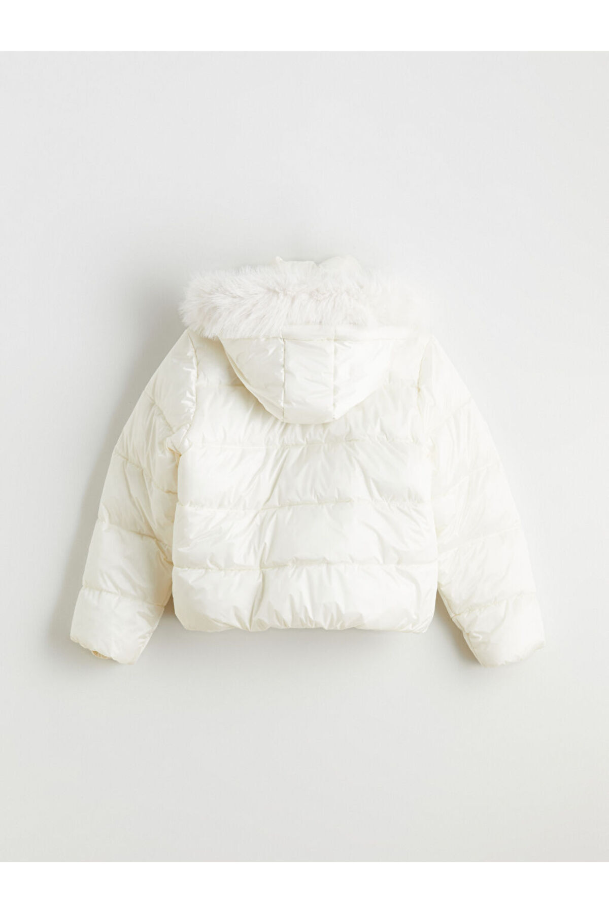 کاپشن اسکی دخترانه کلاه دار سفید مایل به کرم