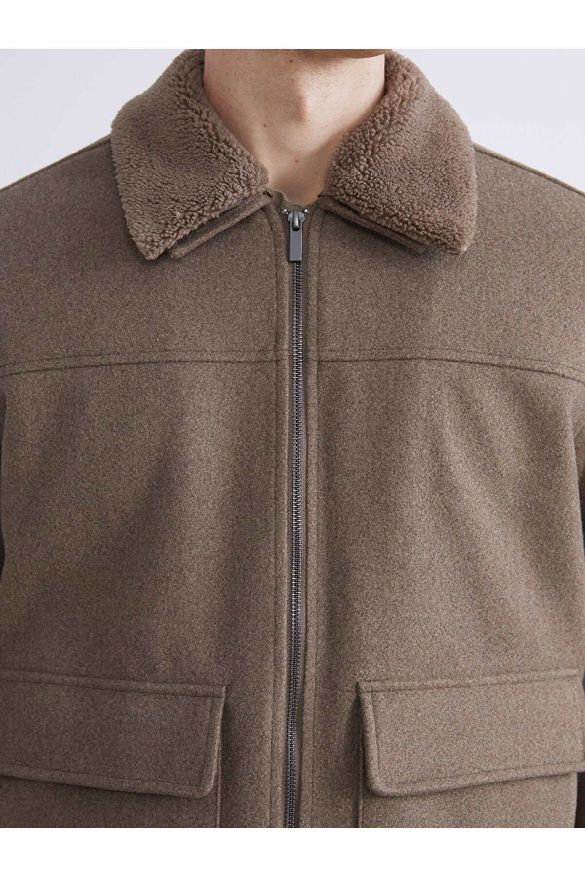 پالتو کشمیری مردانه یقه خز استاندارد بژ