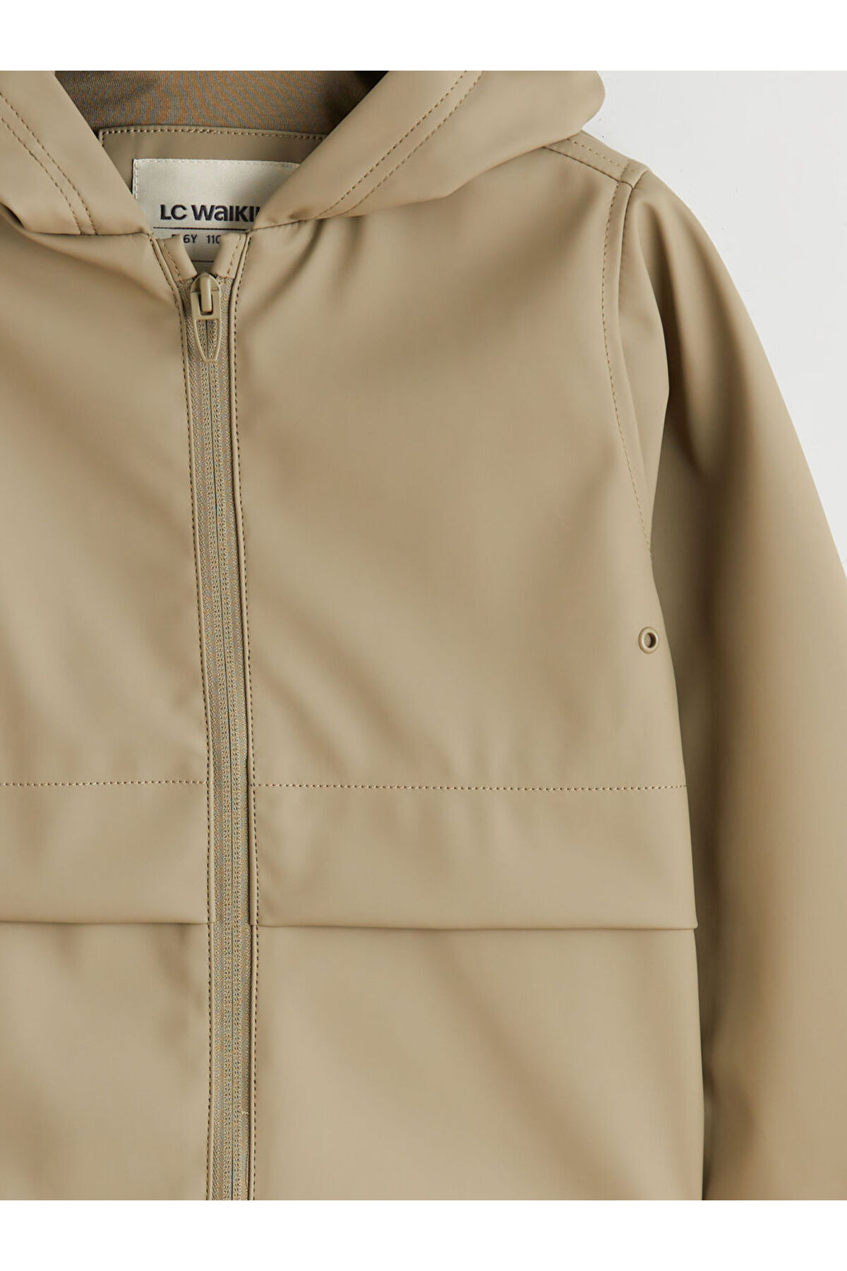 کاپشن پسرانه چرمی ضد آب خاکی رنگ LCW مخصوص کودکان