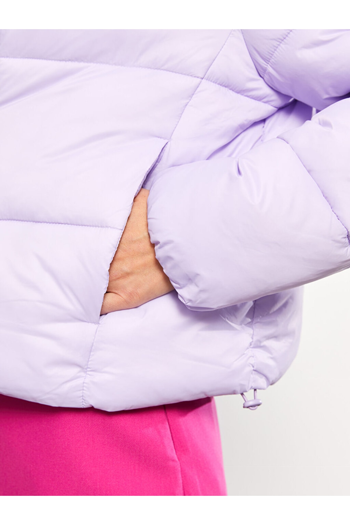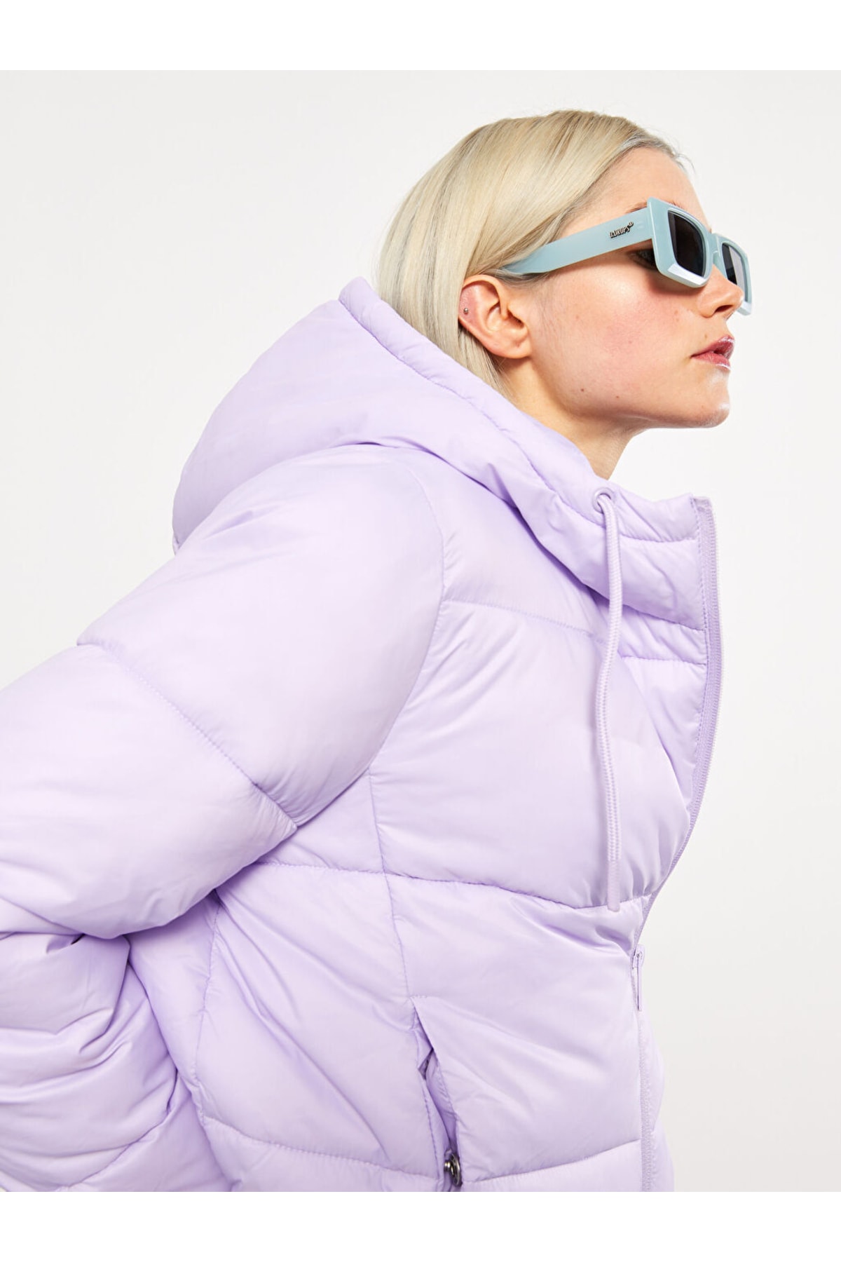 کاپشن پفی آستین بلند زنانه ساده کلاه دار