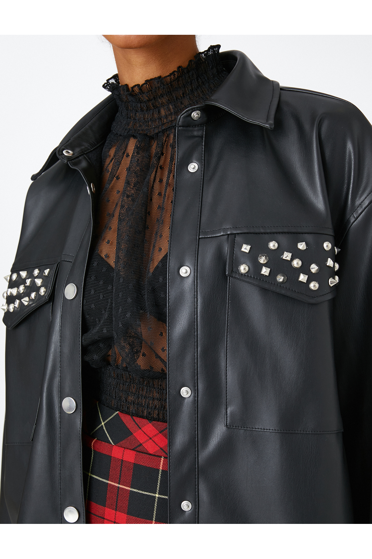شال گردن چرم مصنوعی با جزئیات گل میخ