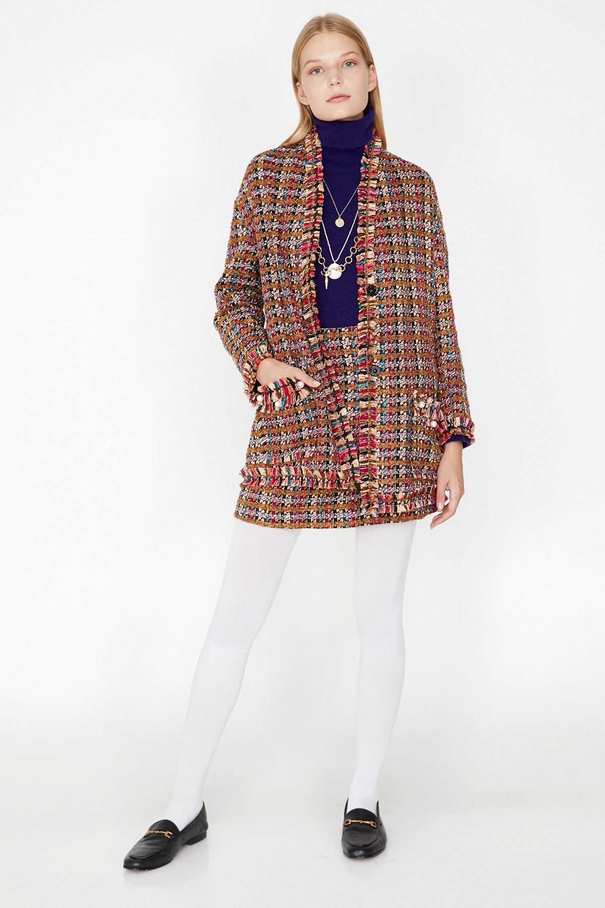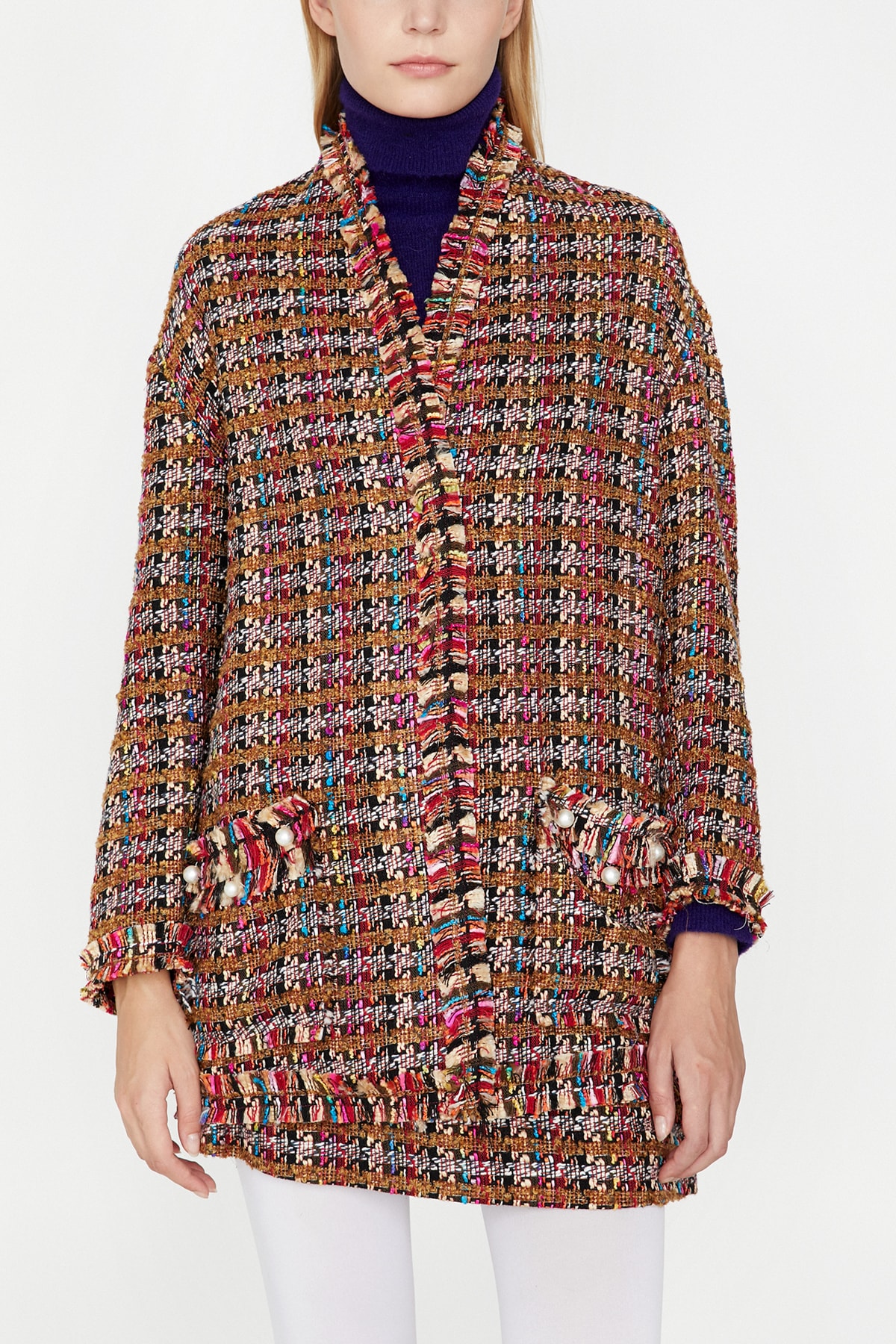 پالتو زنانه طرح دار قهوه ای 9KAK58006PW