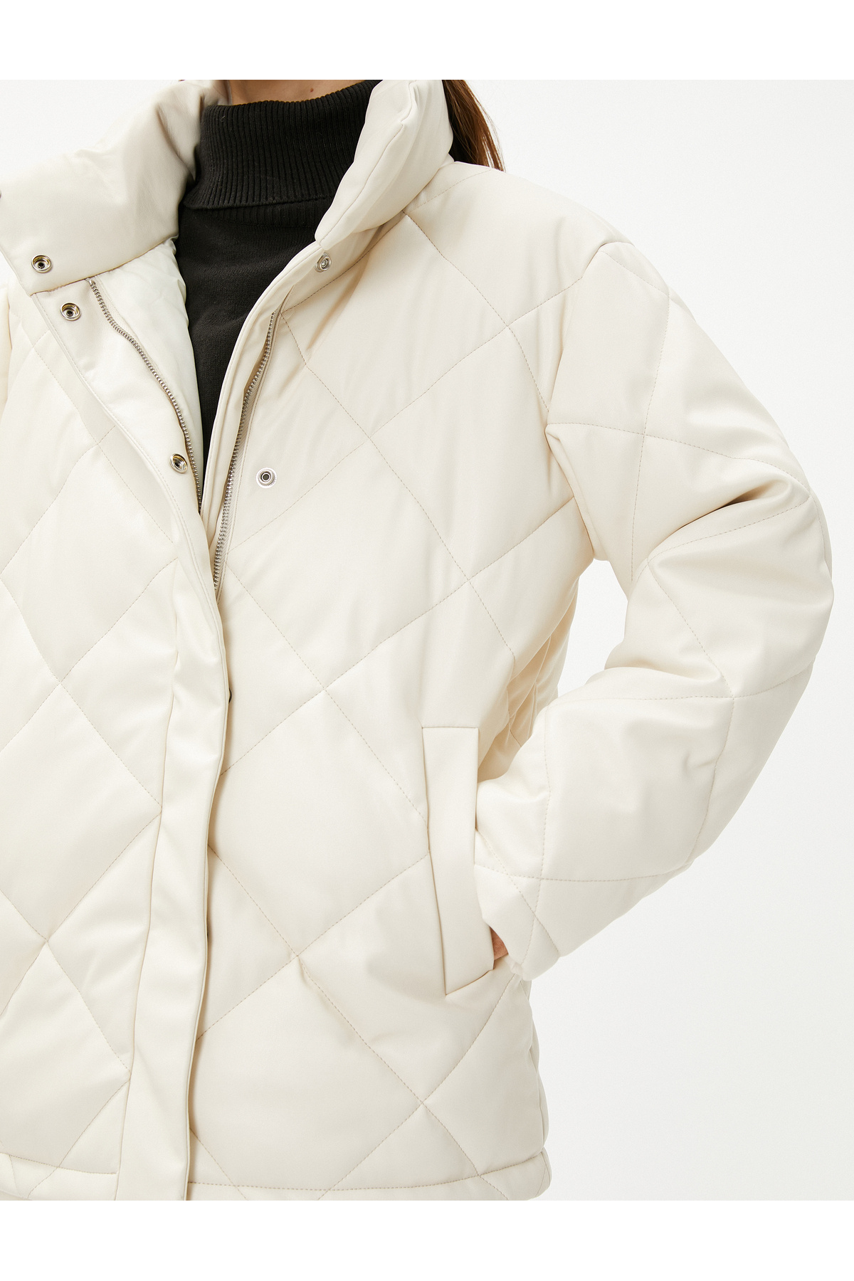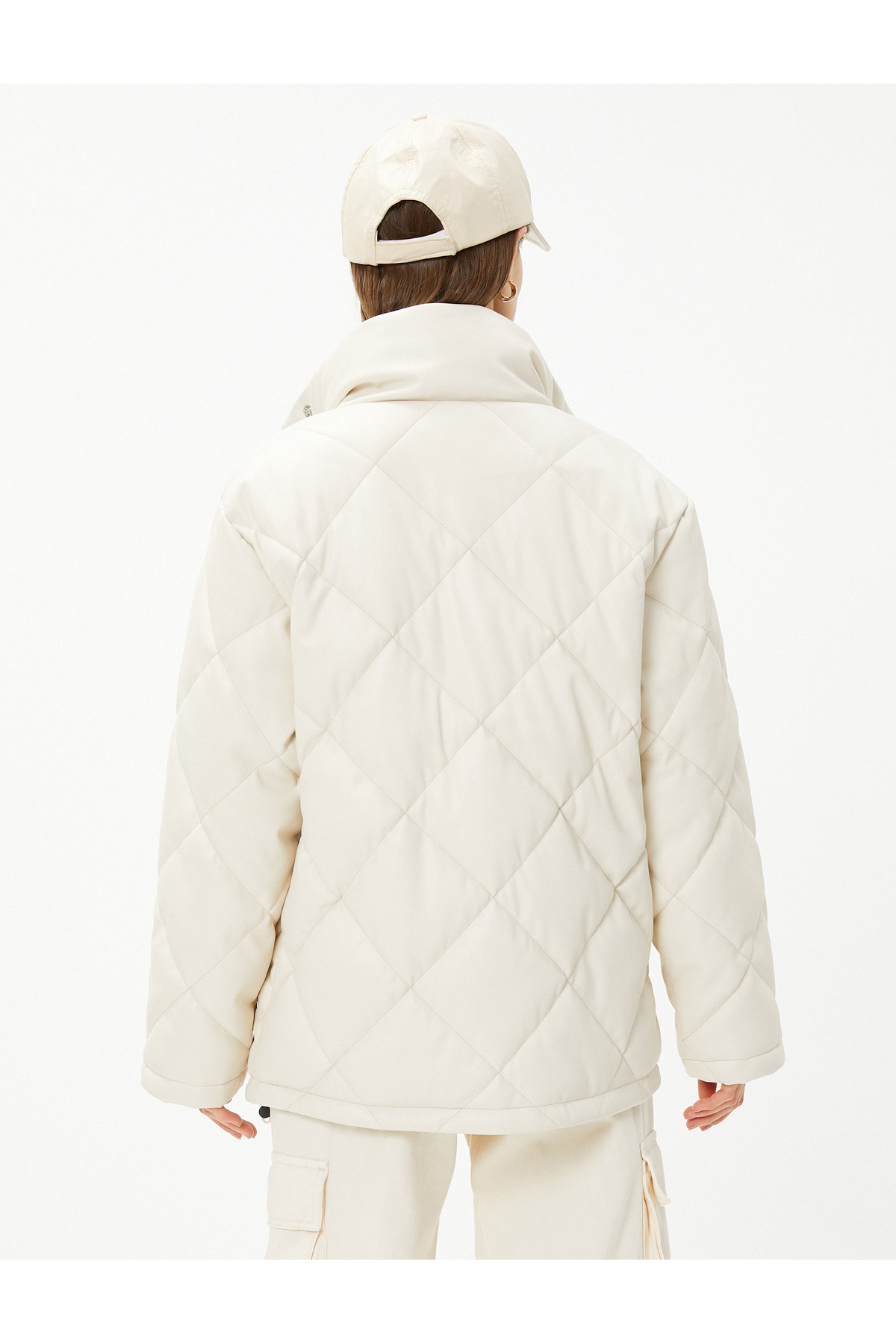 کاپشن پدگذاری شده، یقه ایستاده، فرم ریلکس، بسته شدن با دکمه فشاری