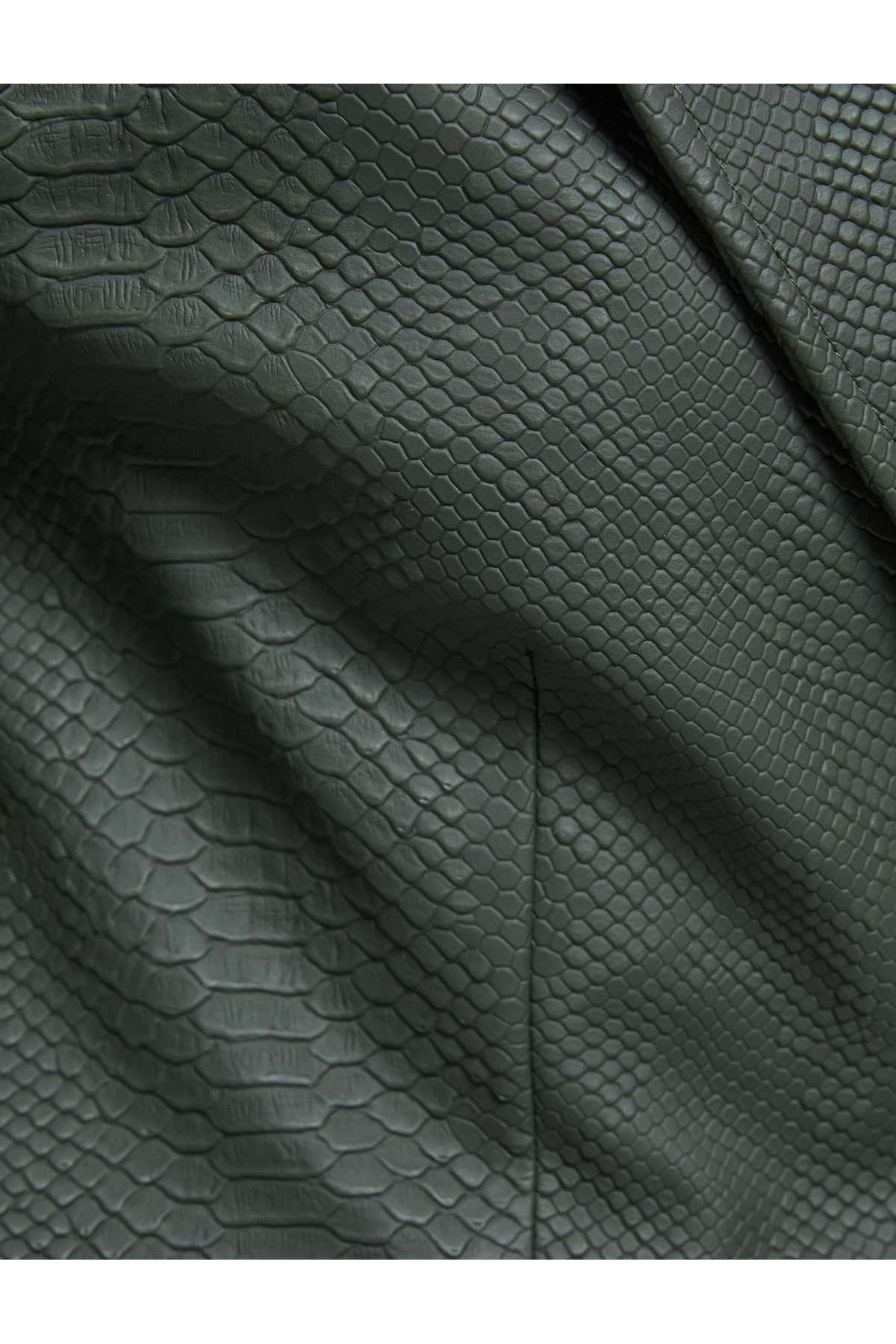 کاپشن چرم کروکودیل طرحدار با یقهی چرخان و دکمهی بسته شدن