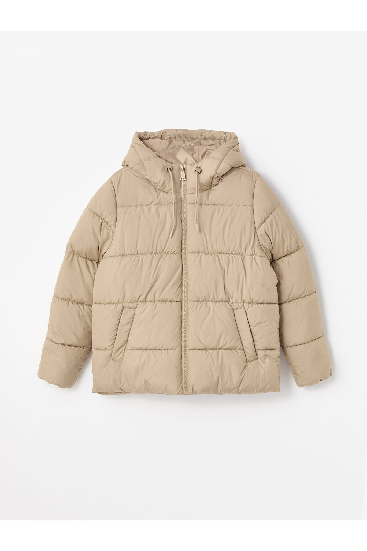کاپشن پفی زنانه کلاه دار کلاسیک بژ LCWAIKIKI