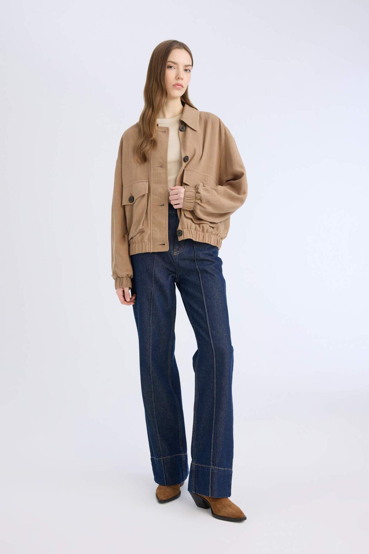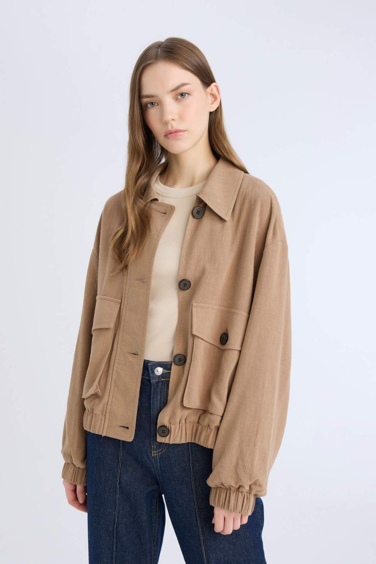 خانه زنانه پوشاک کاپشن کاپشن زنانه قهوه ای دفکتو | E3374AX25SP Defacto