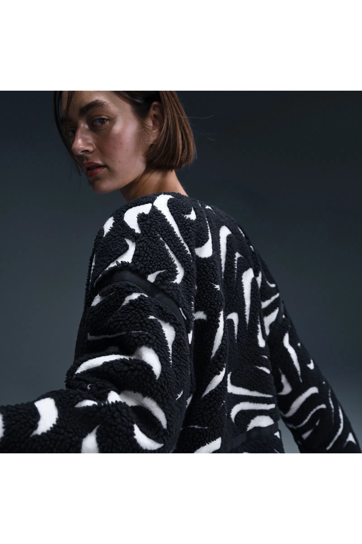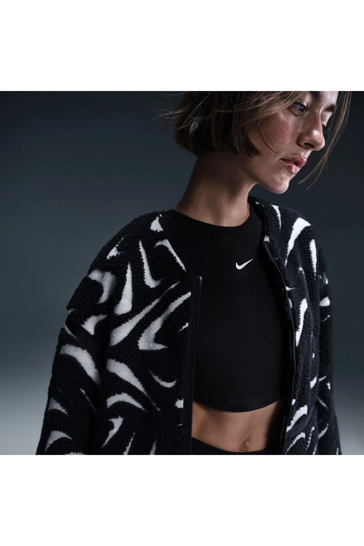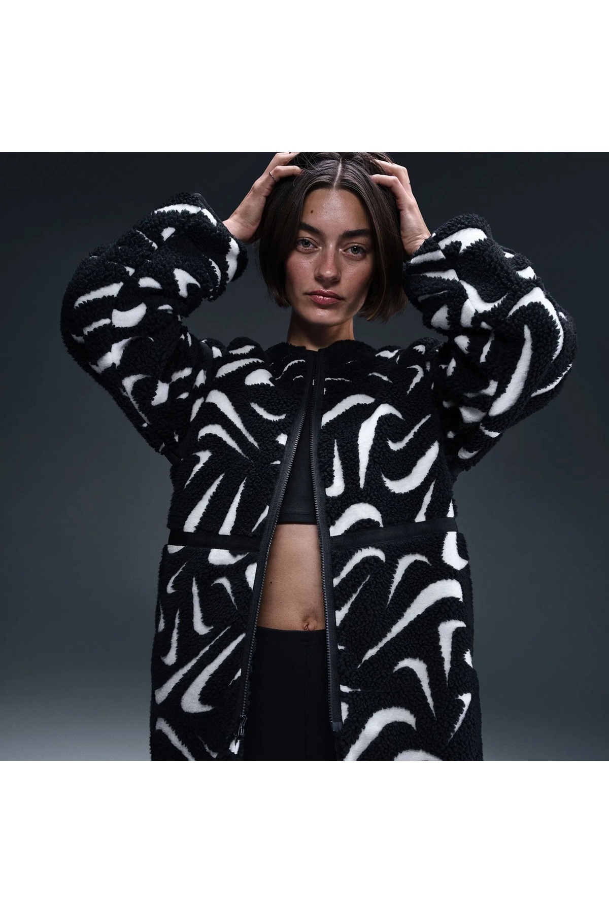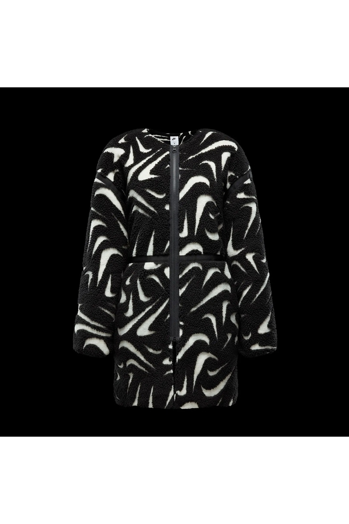 کاپشن زنانه گشاد و تمام زیپ با آستر و لوگوی Swoosh، مدل Cozy، بلند و مو بلند، اسپرت-FV8025-010