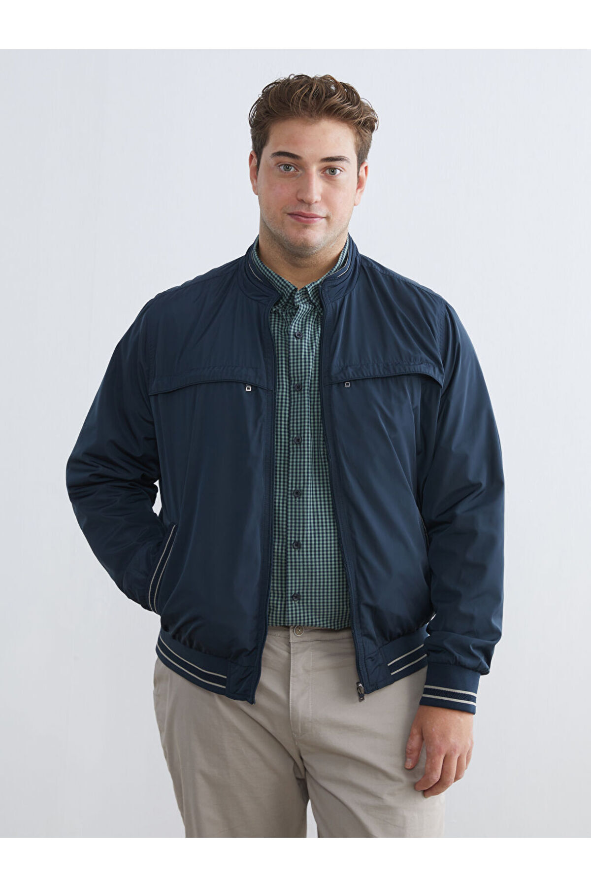 کاپشن مردانه سایز بزرگ ایندیگو با یقه ایستاده و فیت استاندارد