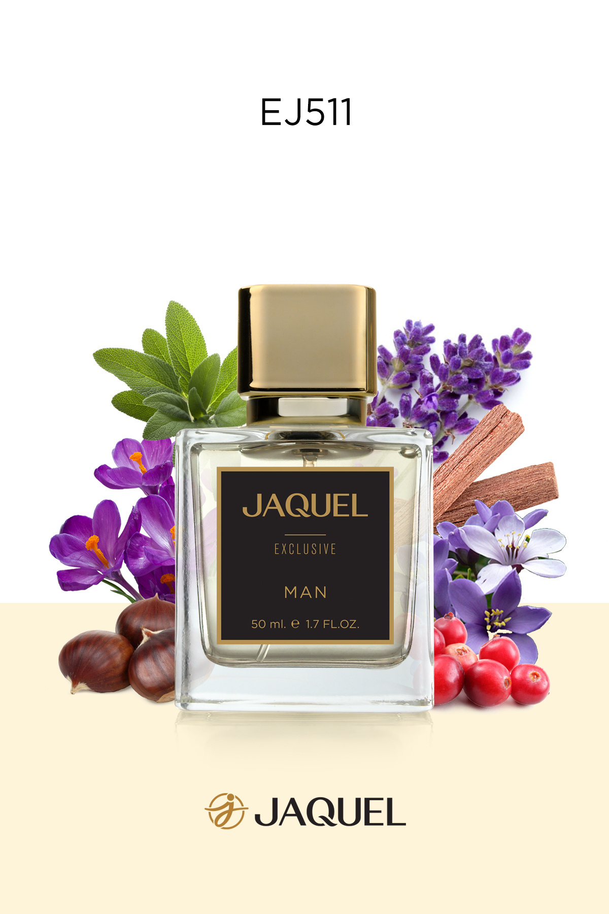عطر مردانه EJ511 Exclusive، 50 میلیلیتر، تند، فلفل صورتی، اسطوخودوس، شاه بلوط هندی، چوب سدر