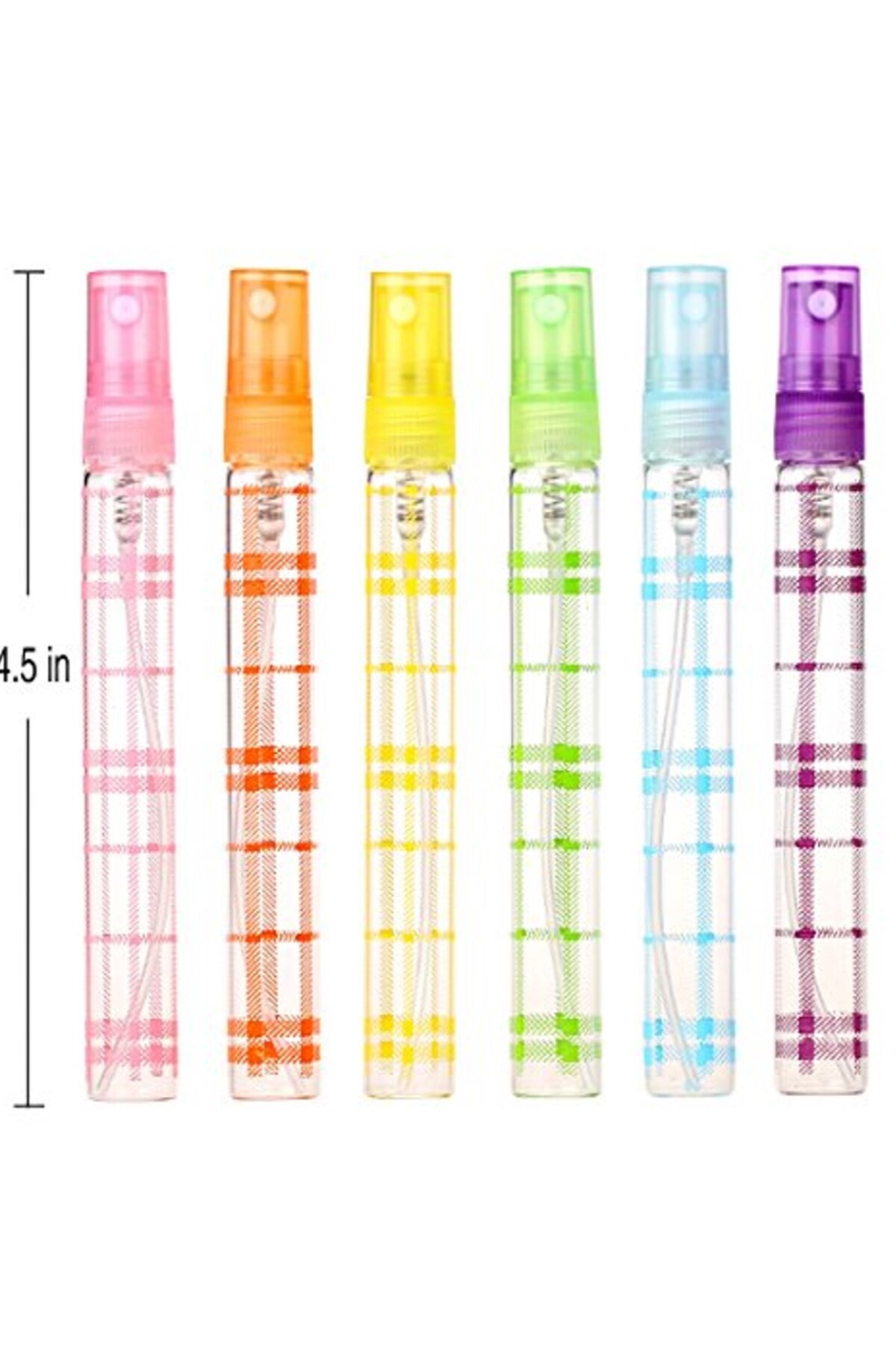 مجموعه 6 بطری اسپری عطر شیشهای رنگی، خالی و قابل پر کردن مجدد، برای لوسیون، تونیک و روغنهای ضروری