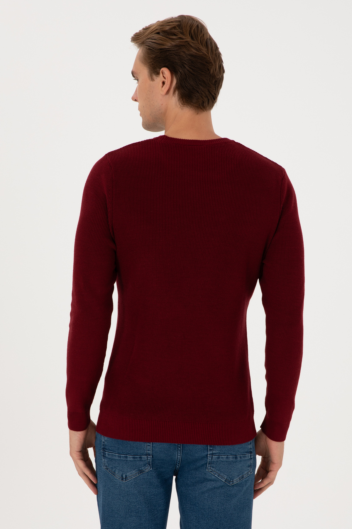پلیور مردانه یقه گرد اسلیم فیت به رنگ زرشکی کد ۵۰۳۱۳۶۶۷-VR014