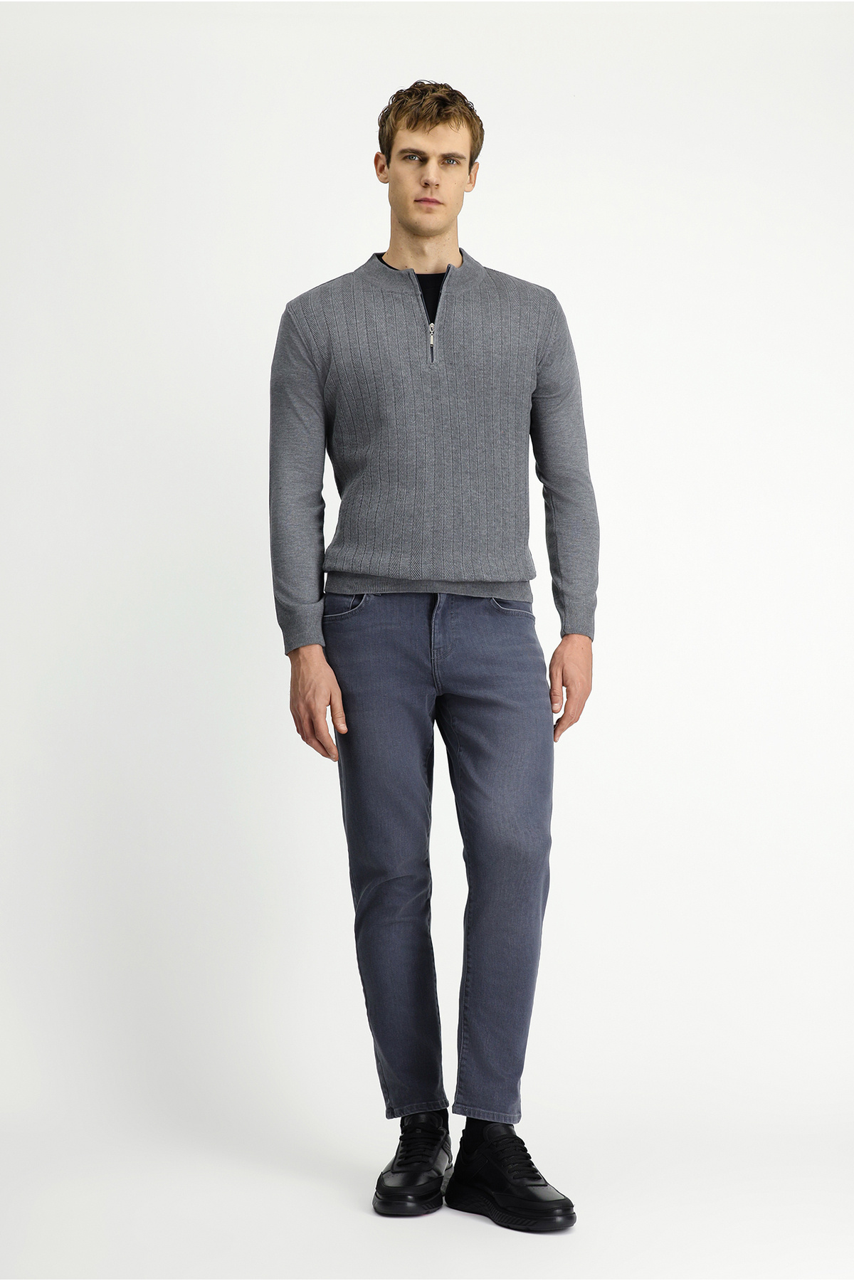 ژاکت بافتنی یقه اسکی معمولی سایز نیم زیپ دار