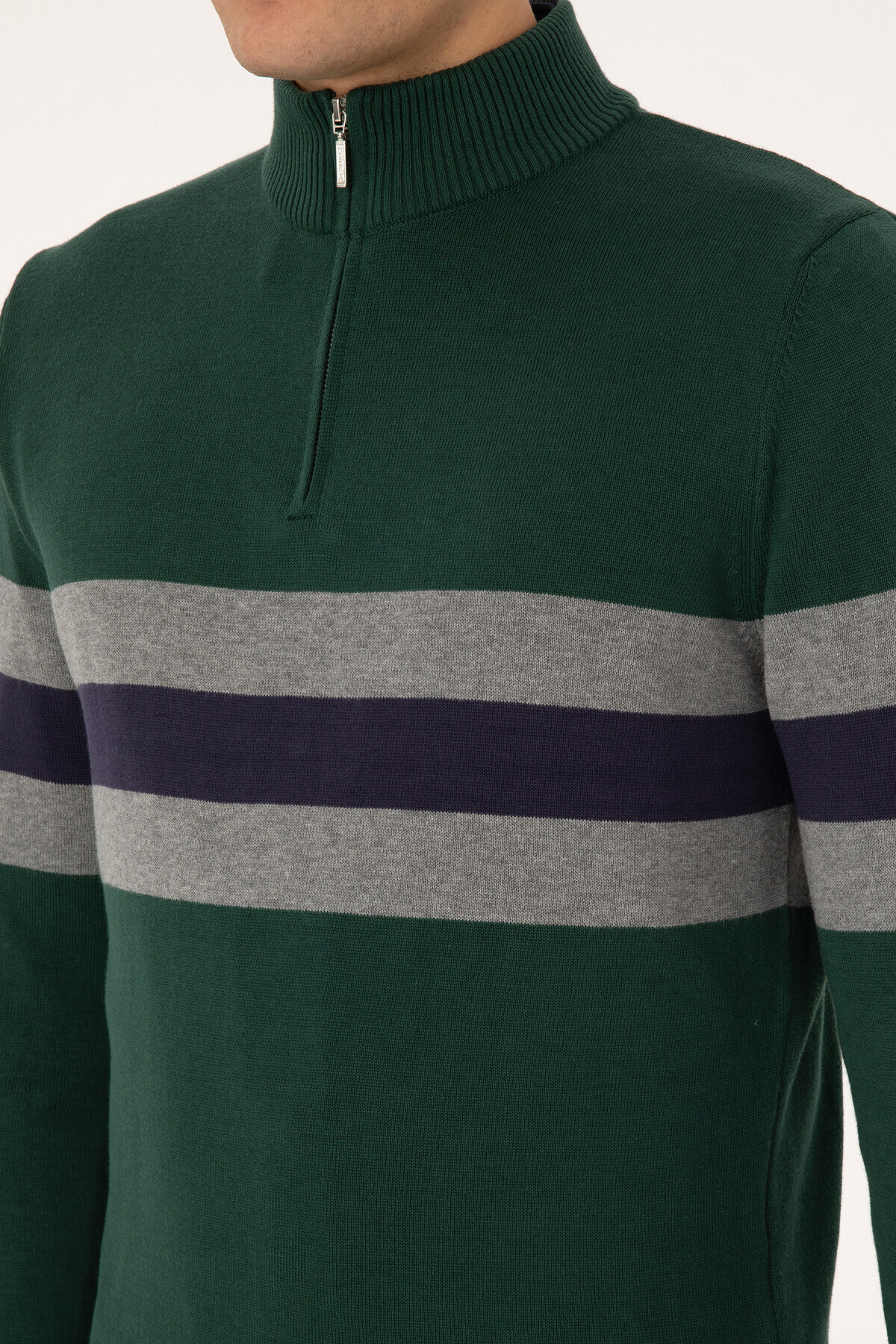 پلیور مردانه نیم زیپ معمولی سبز تیره 50315034-VR079