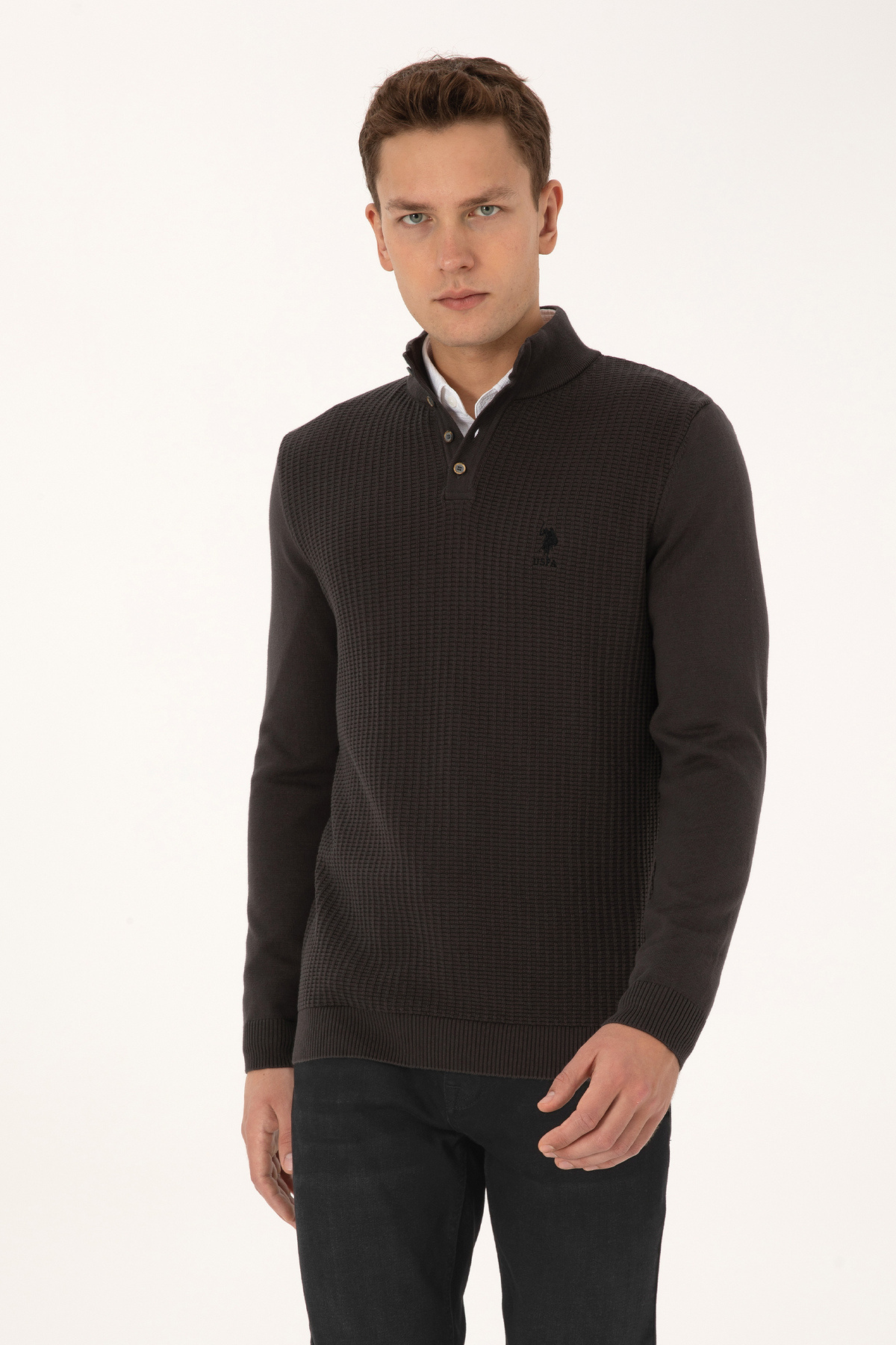 پلیور مردانه یقه دکمهدار معمولی، رنگ ملانژ آنتراسیت، کد ۵۰۳۰۸۹۱۵-VR۰۸۱