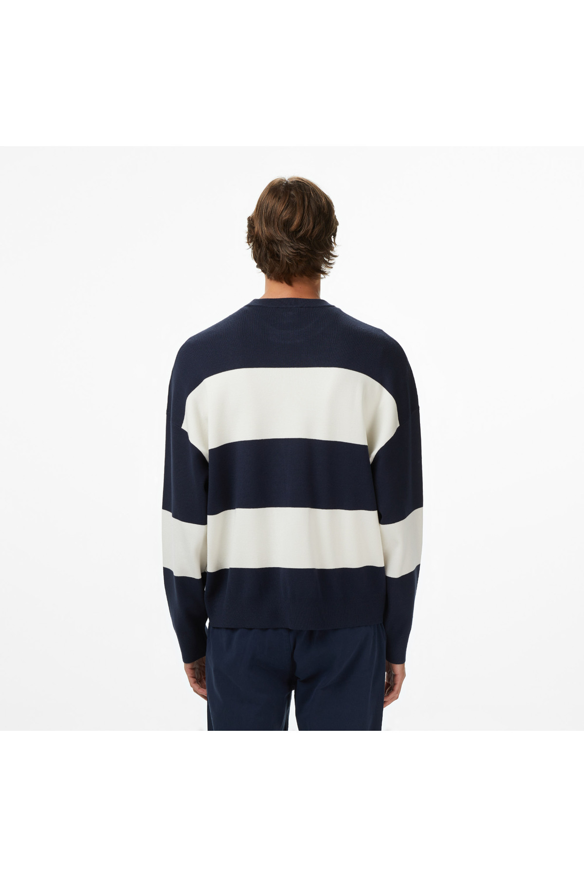 لباس بافتنی آبی مردانه طرح راه راه برفی و آرام