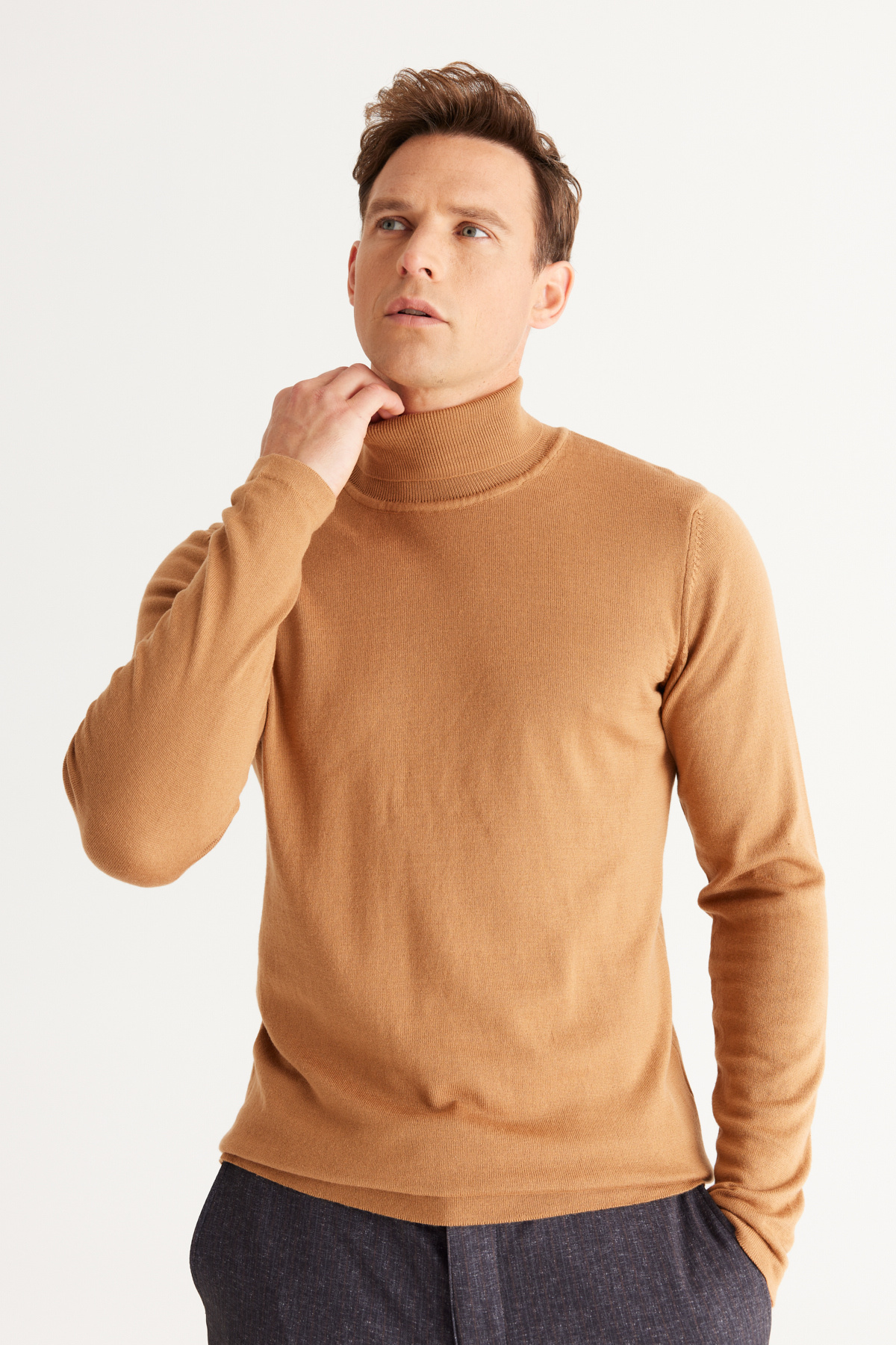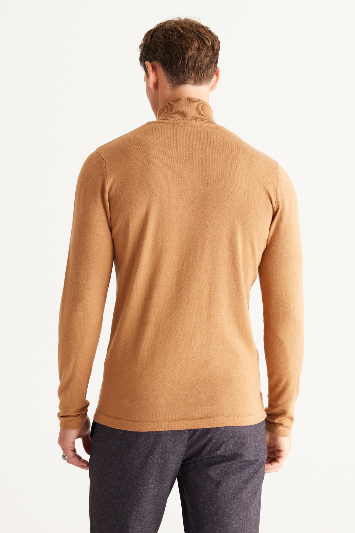 ژاکت بافتنی یقه اسکی کامل مینک استاندارد فیت معمولی برشدار