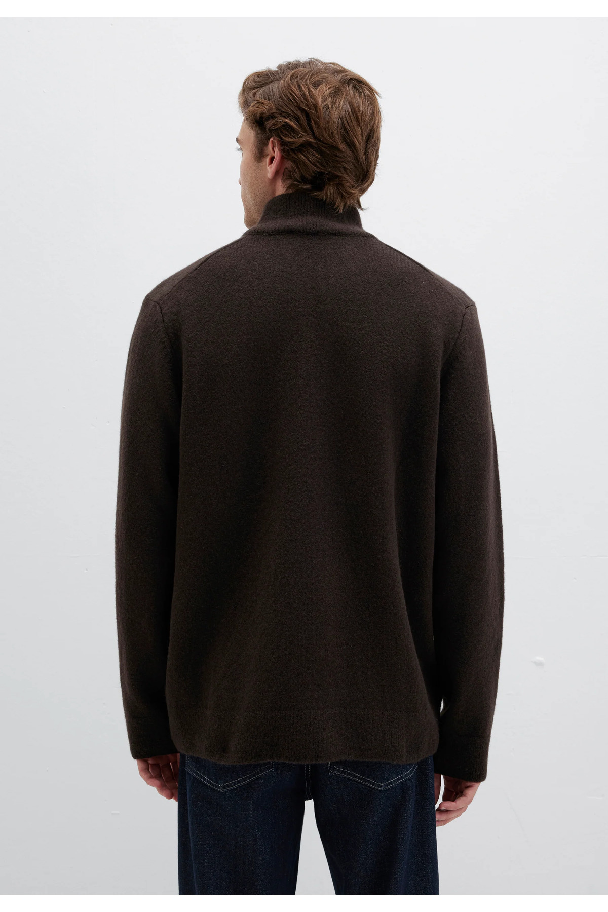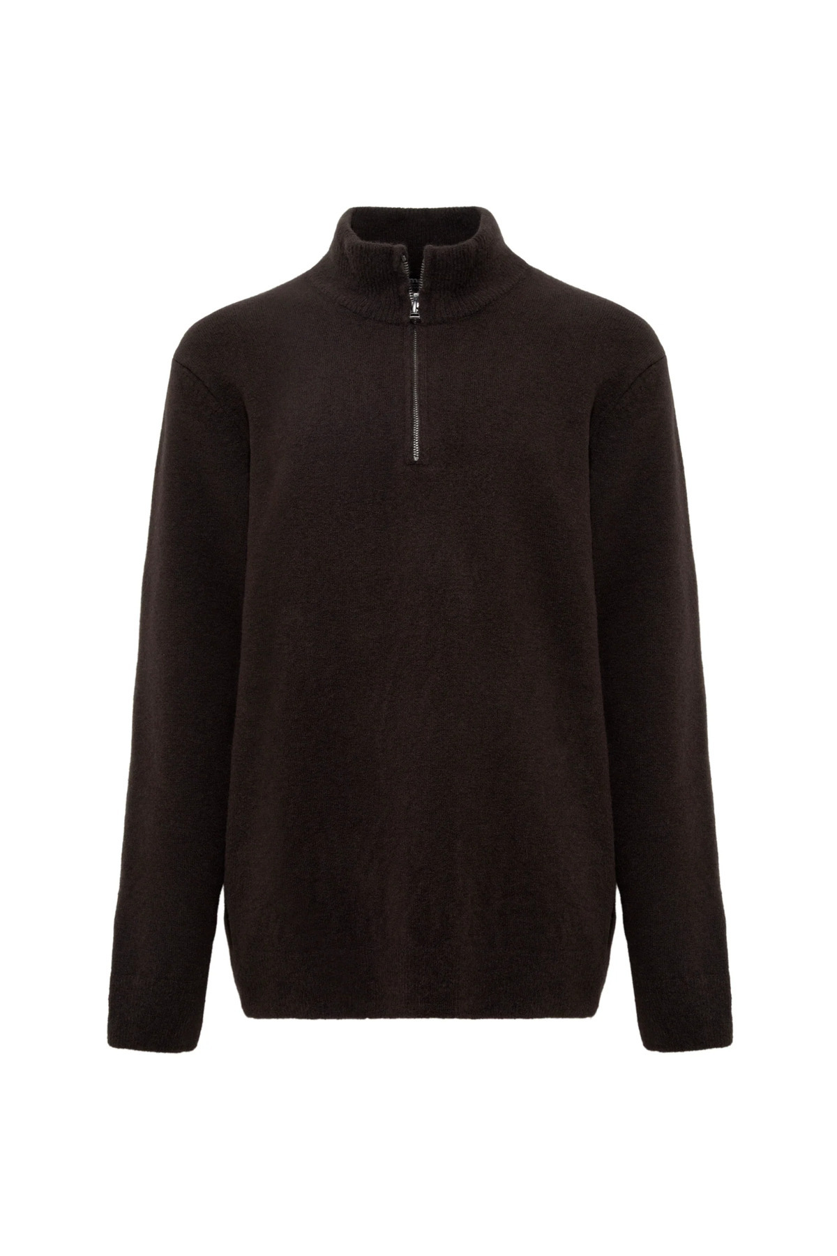 ژاکت پشمی قهوهای طرحدار نیم زیپ ایستاده، سایز معمولی / برش معمولی، 0710380-89103