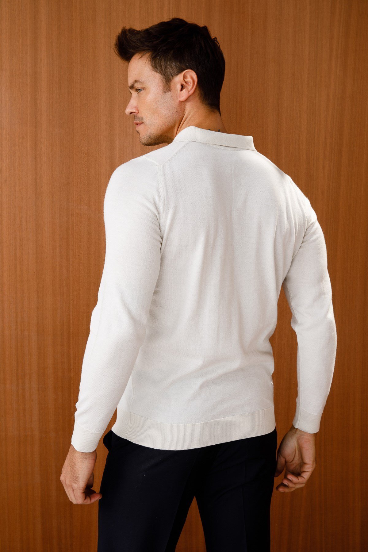 ژاکت بافتنی نازک یقه پولو مردانه معمولی (استخوانی)