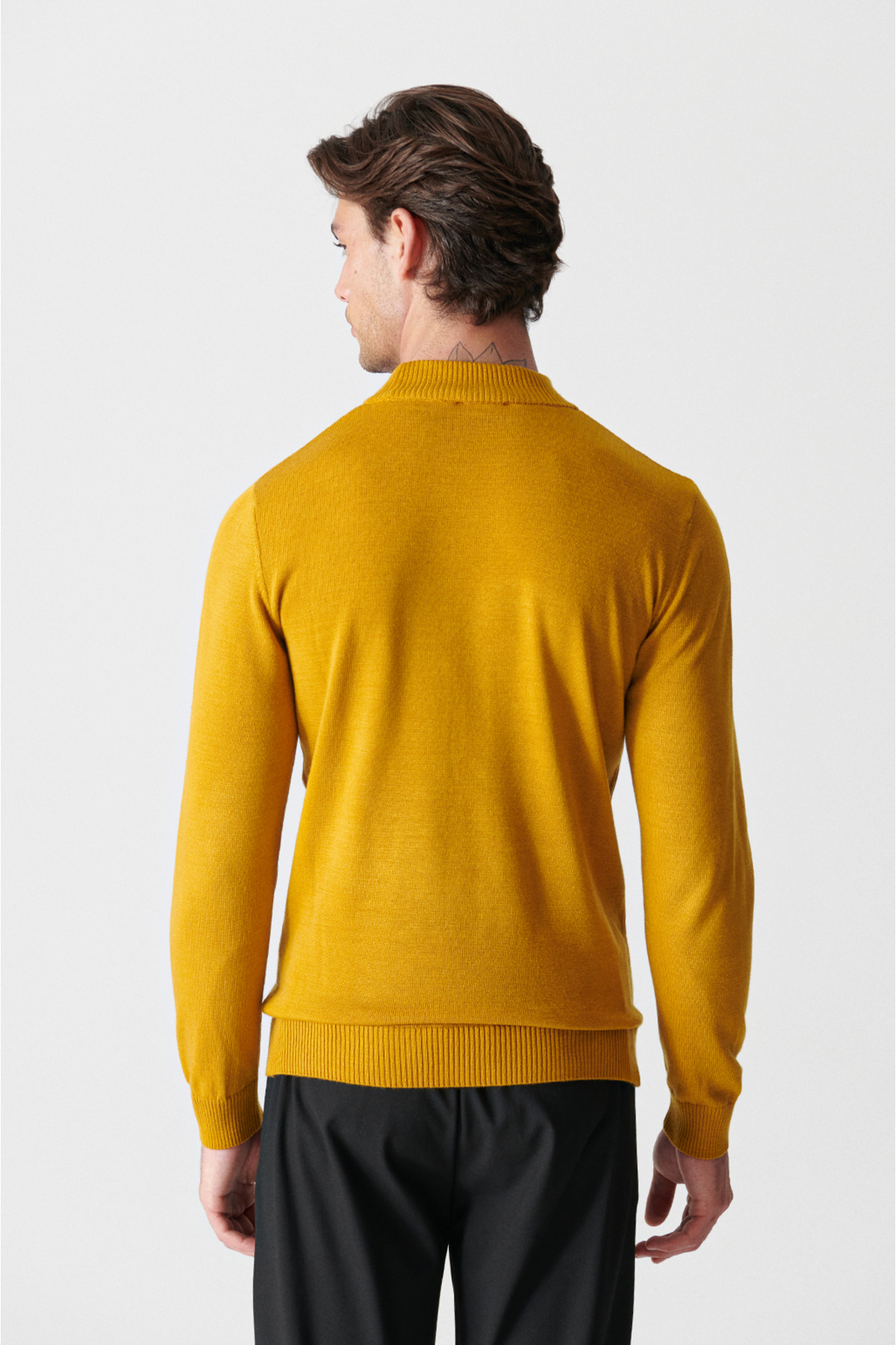 ژاکت بافتنی مردانه یقه اسکی خردلی بدون پرز E005001
