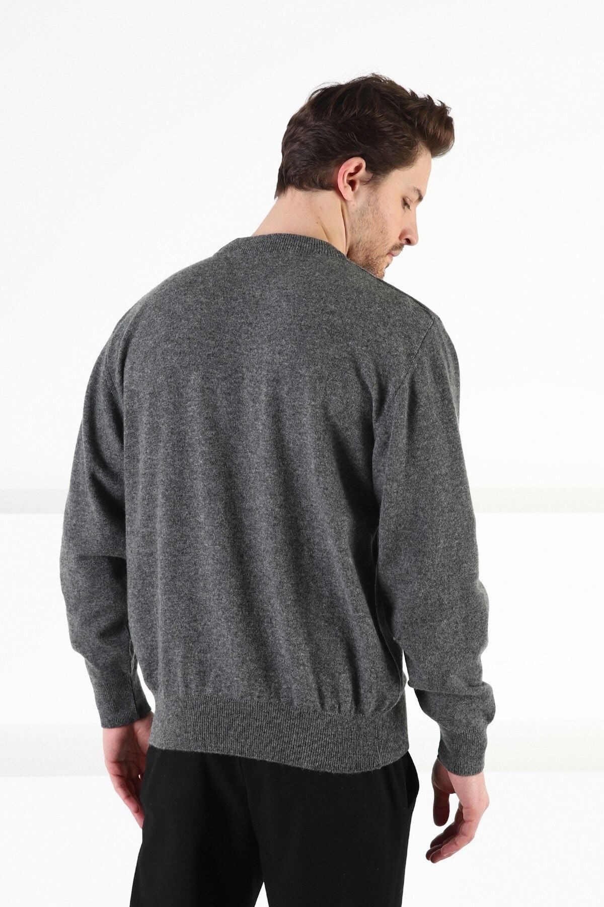 ژاکت مردانه یقه گرد خاکستری دودی، ۱۰۰٪ پشم بره