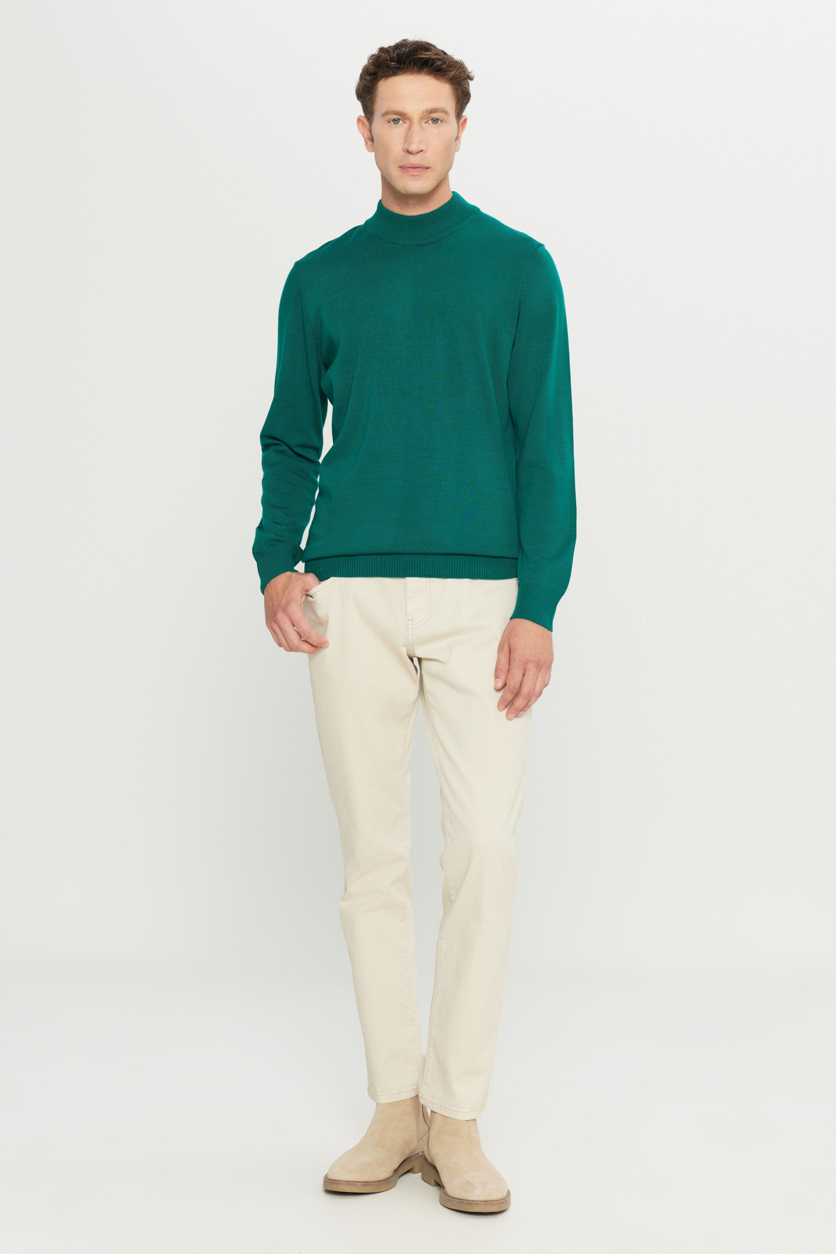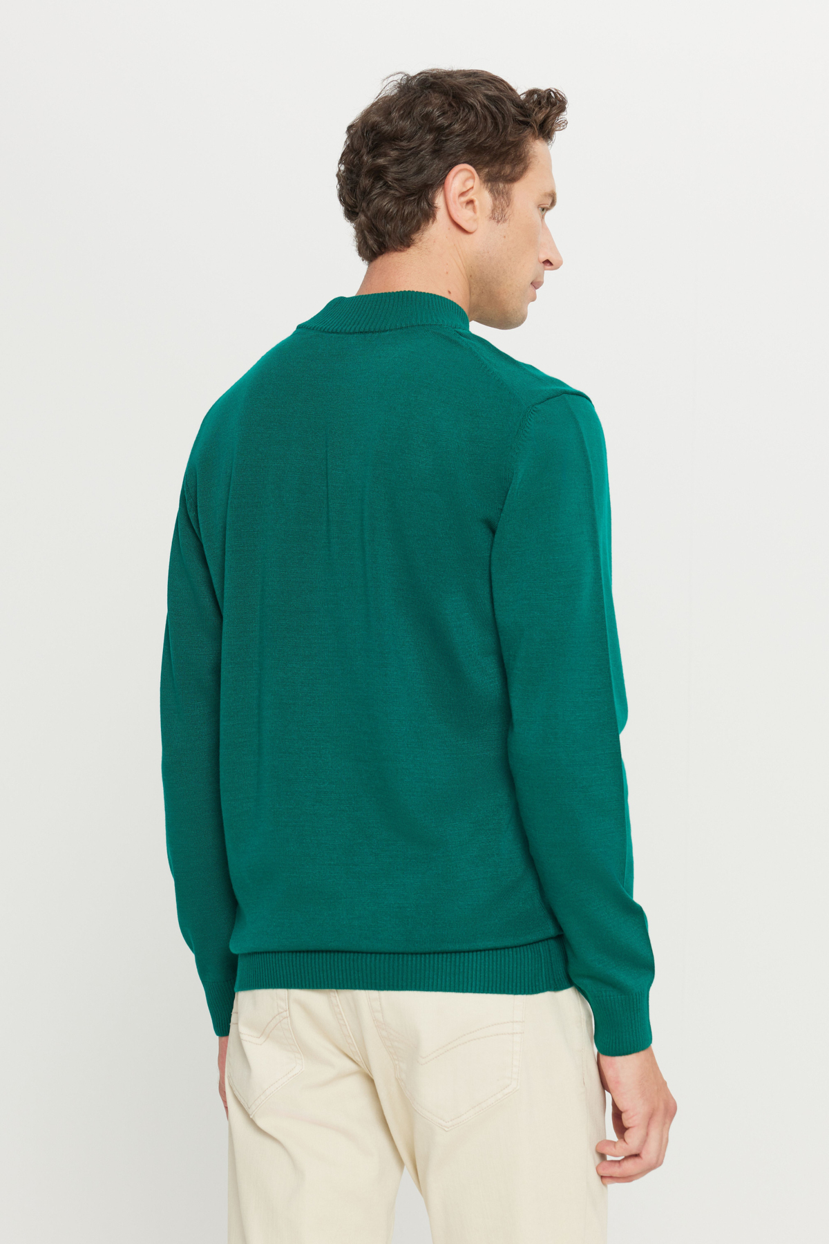 ژاکت بافتنی یقه اسکی مردانه سایز استاندارد، بدون پرز، برش معمولی، به رنگ سبز تیره