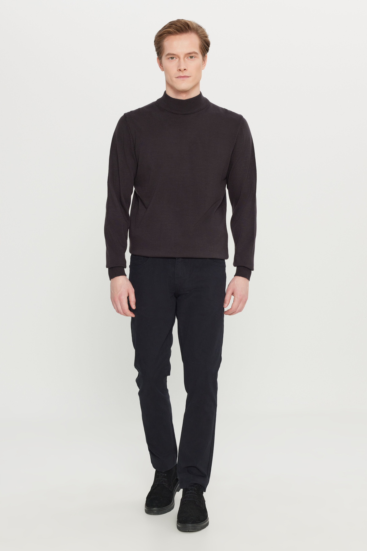 ژاکت بافتنی یقه اسکی مردانه قهوهای بدون پرز، سایز استاندارد، برش معمولی