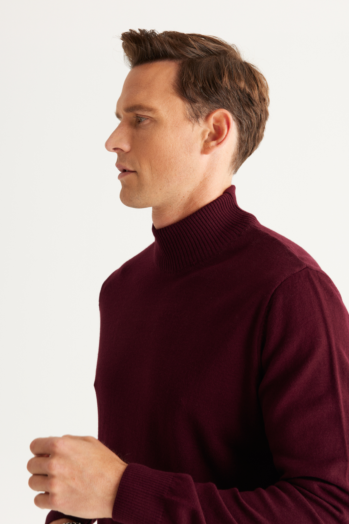 ژاکت بافتنی یقه اسکی مردانه سایز استاندارد بدون پرز و برش معمولی زرشکی