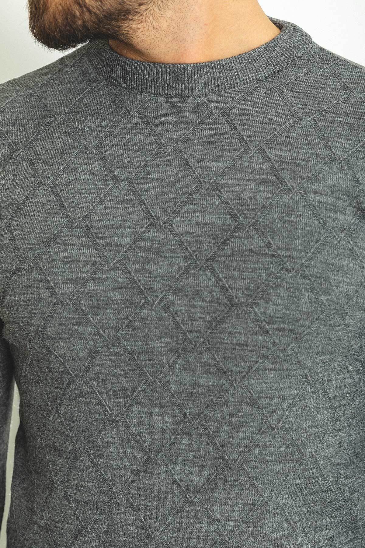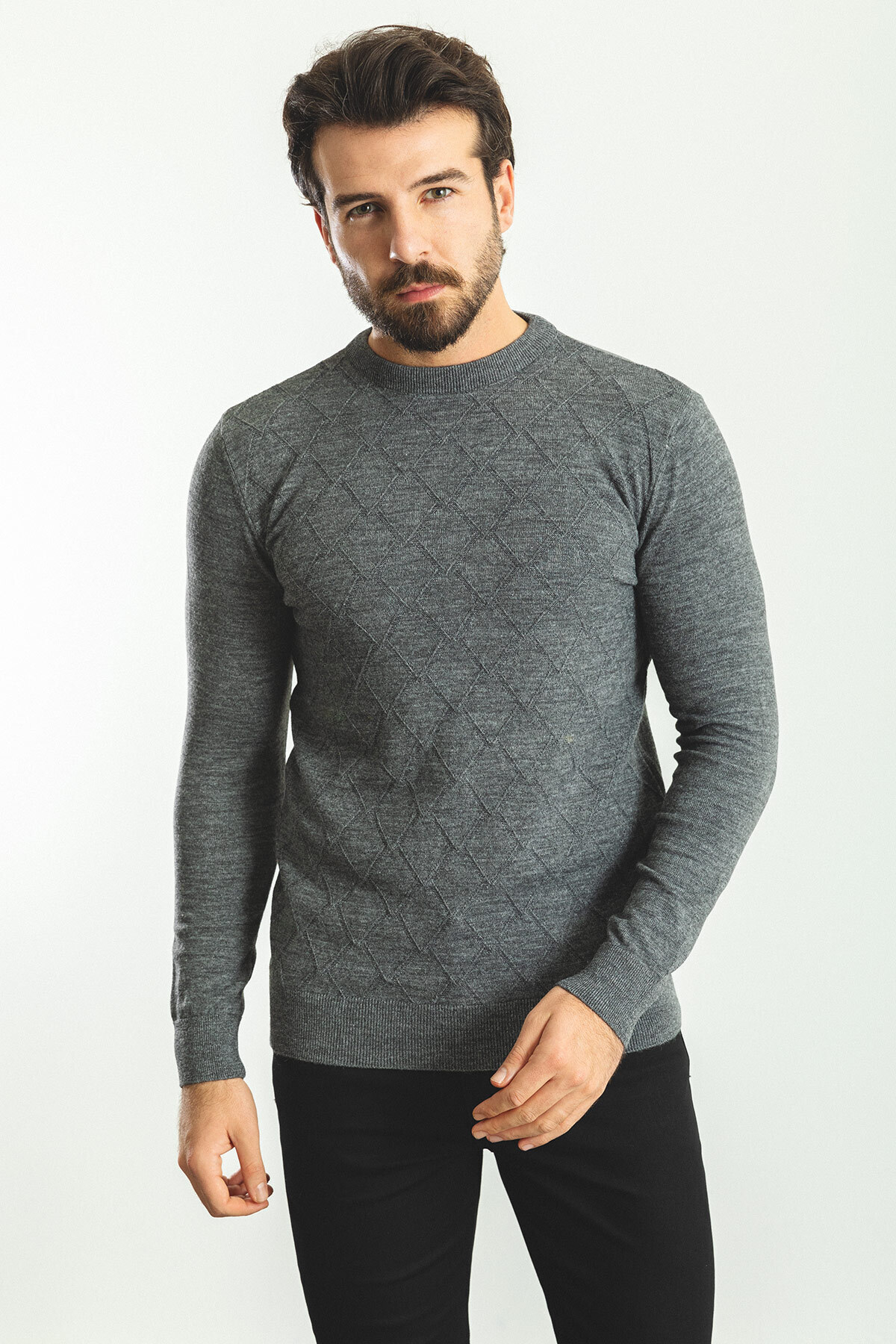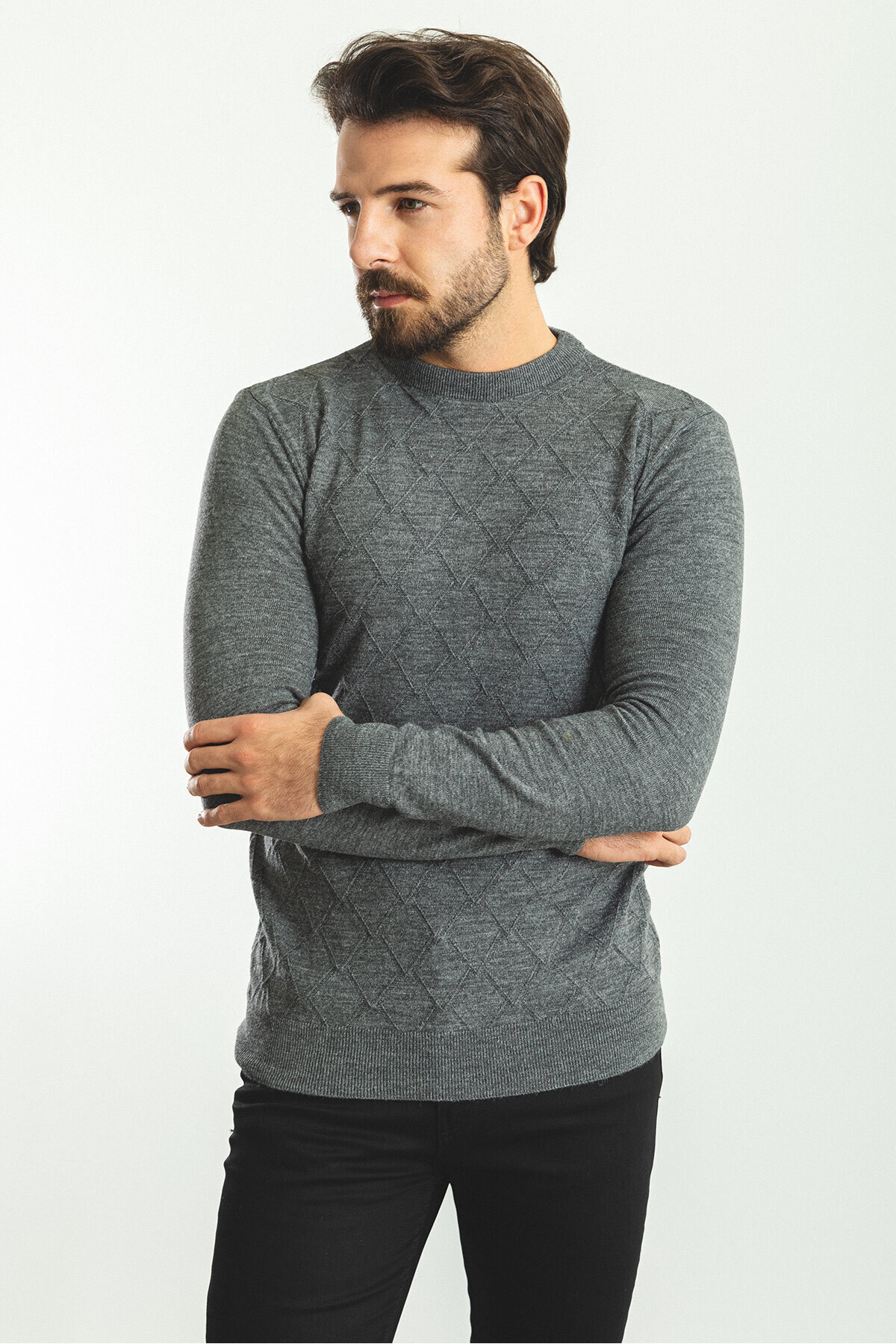 پلیور پشمی مردانه یقه گرد طرح دار اسلیم فیت آنتراسیت – 11379.22K