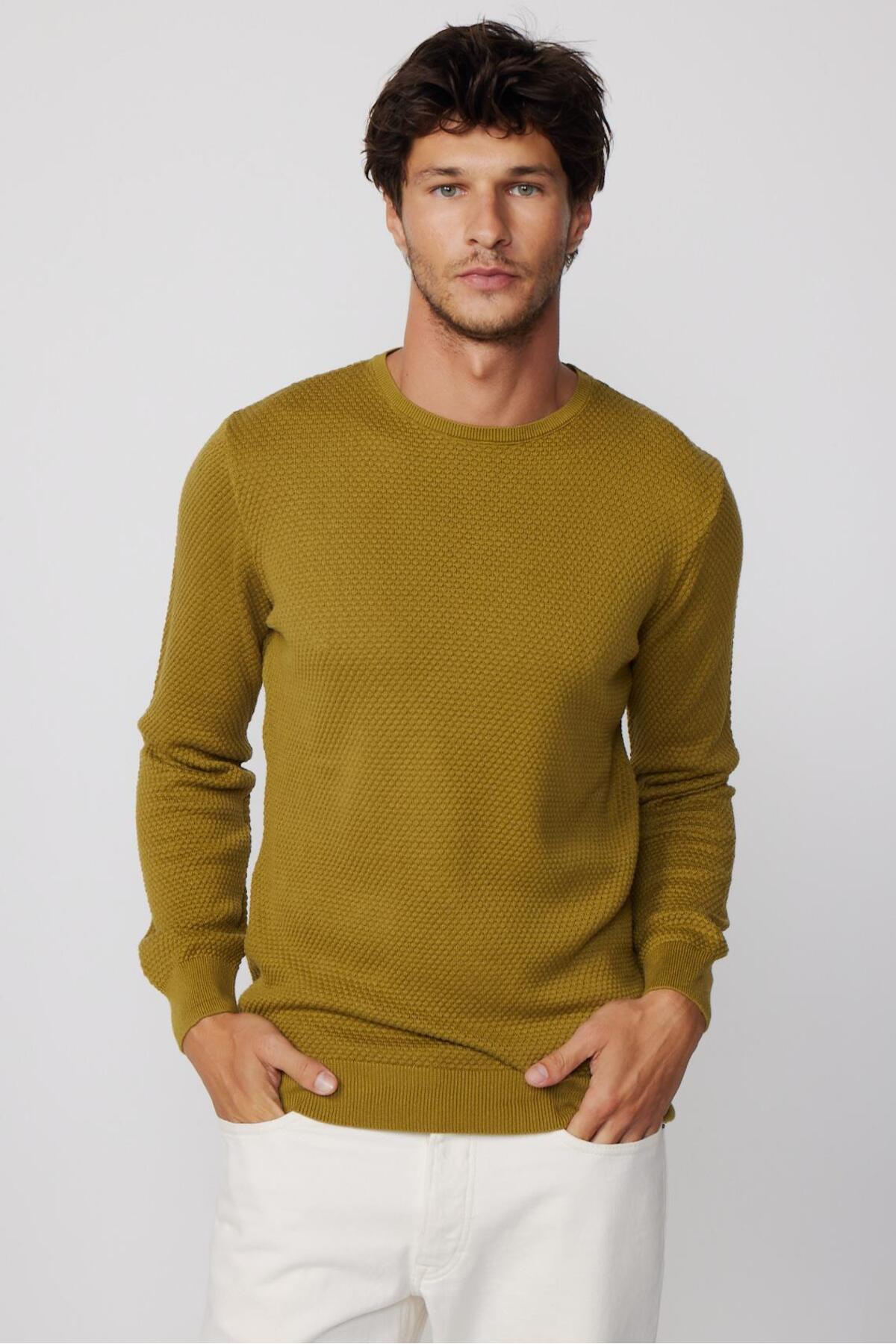 ژاکت بافتنی سبز مردانه یقه گرد باریک و برش باریک