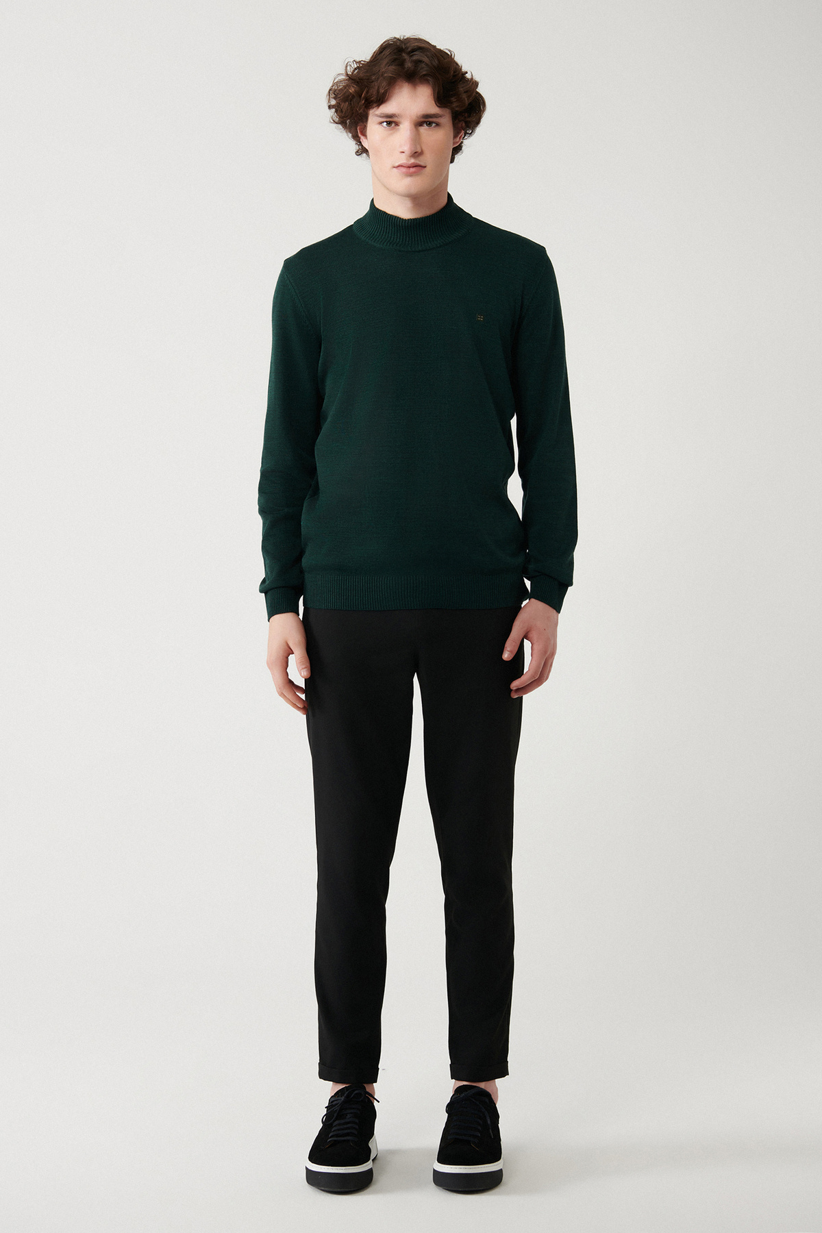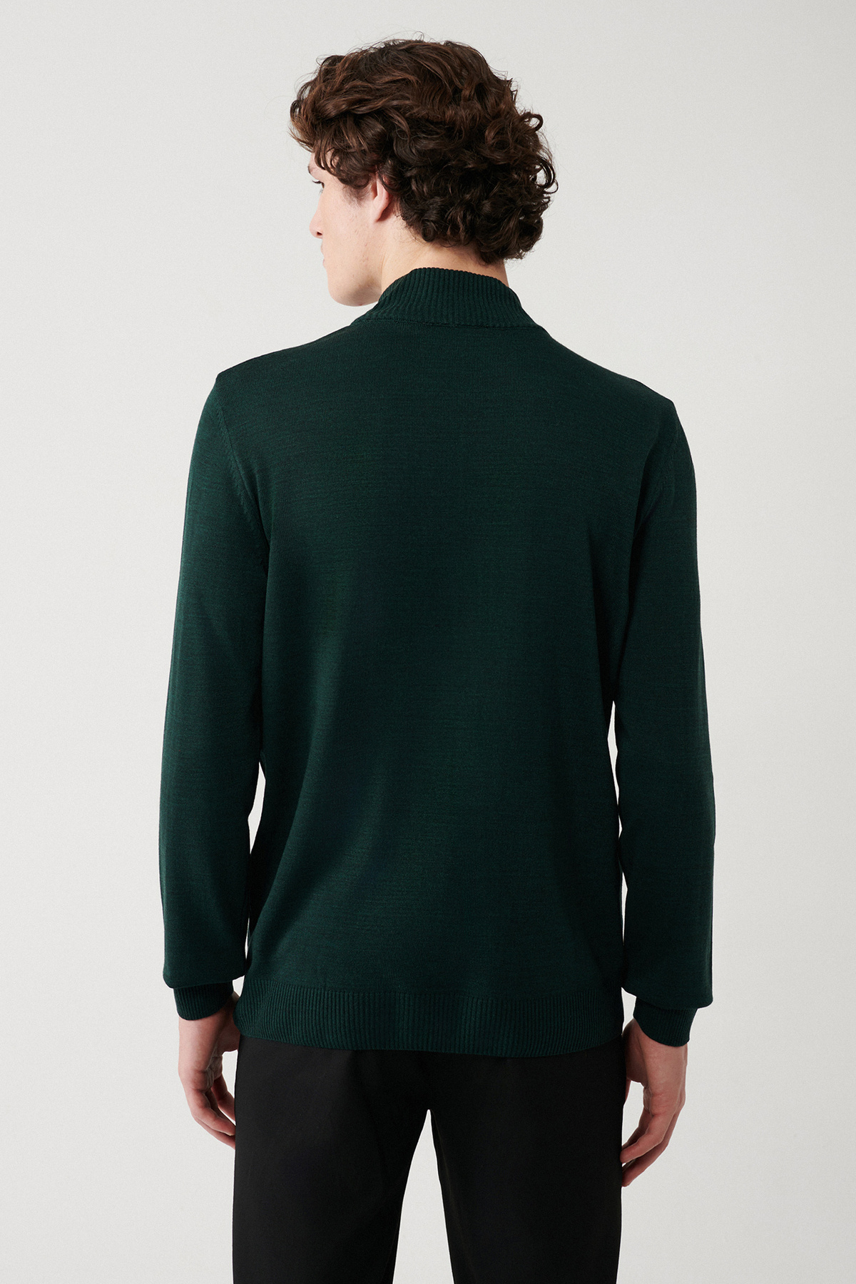ژاکت بافتنی مردانه یقه اسکی سبز بدون پرز E005001