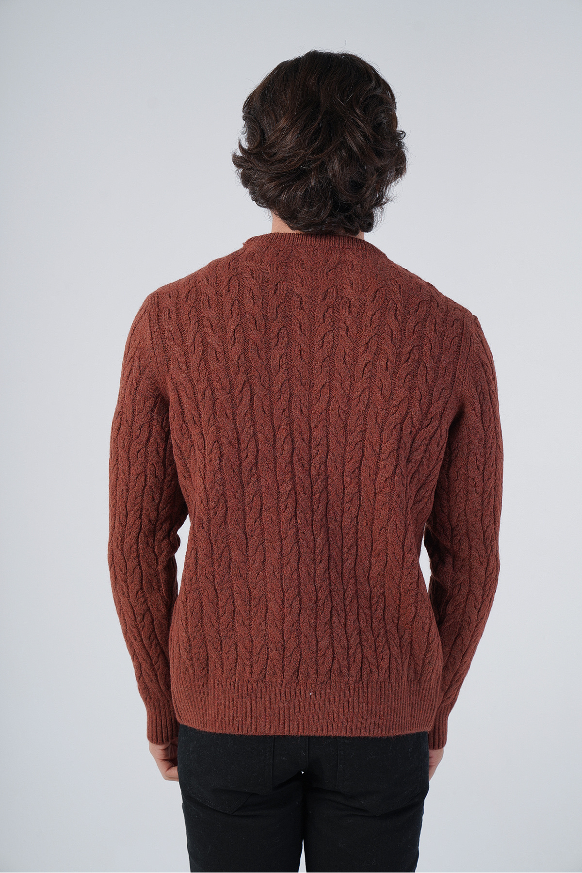 ژاکت بافتنی پشمی یقه گرد مردانه طرح راه رفتن مدل سبد مو مدل Tile